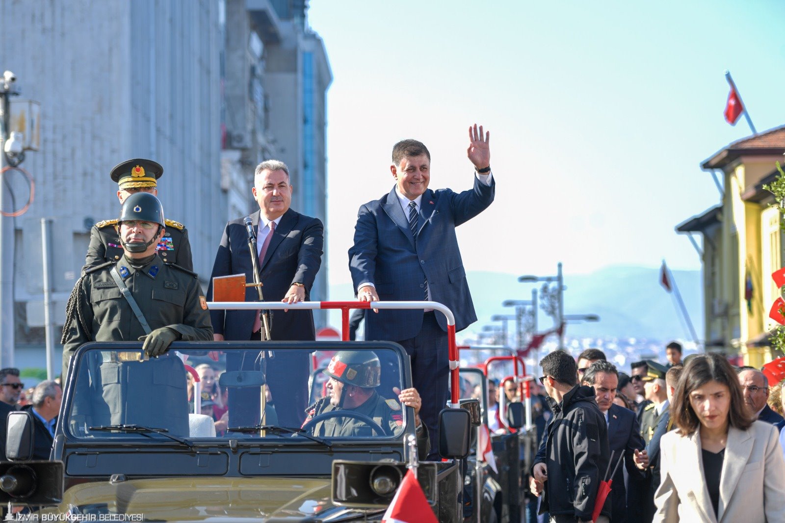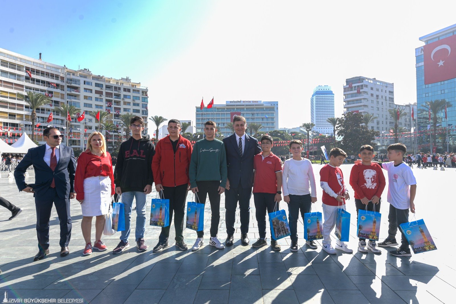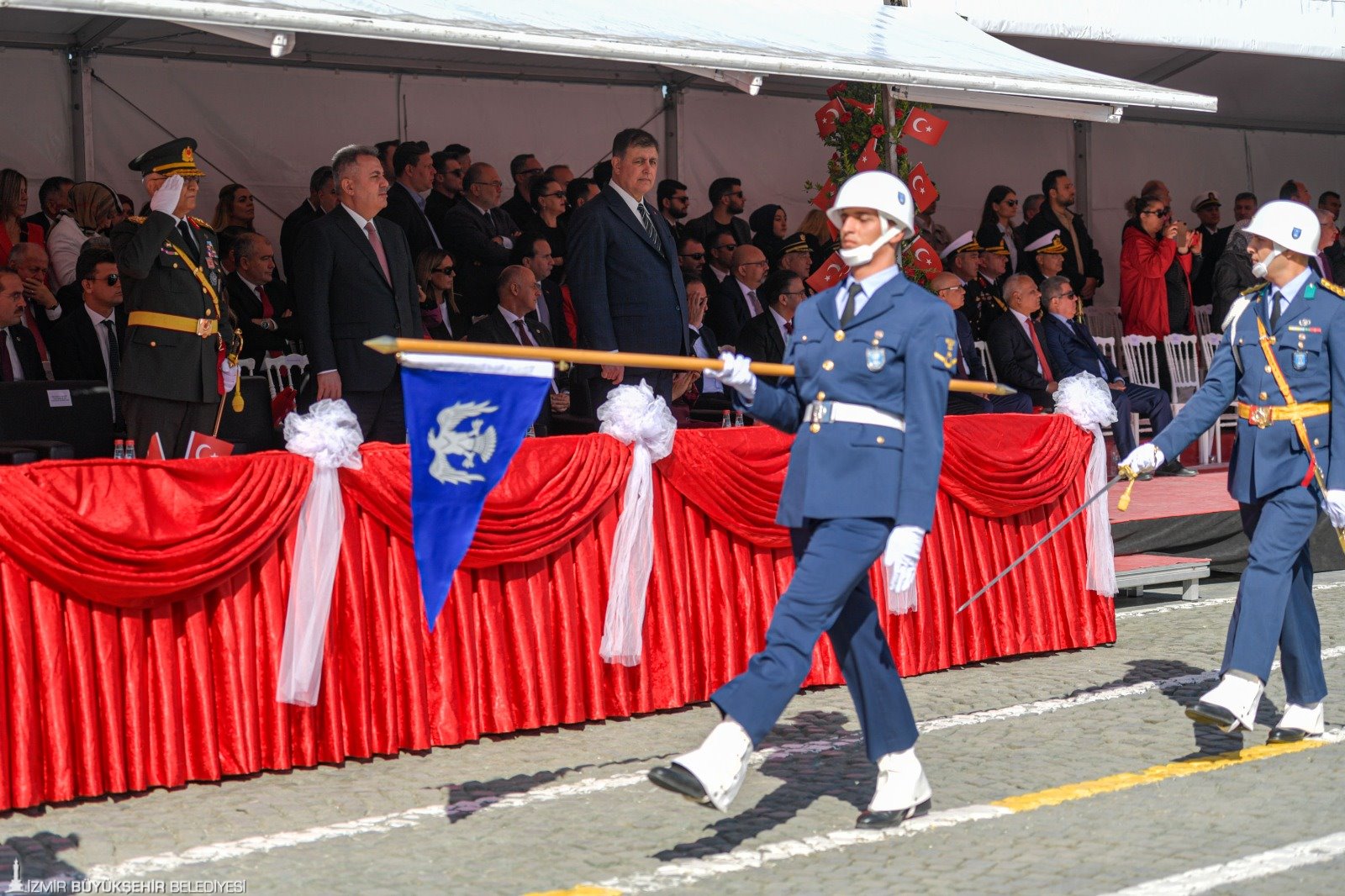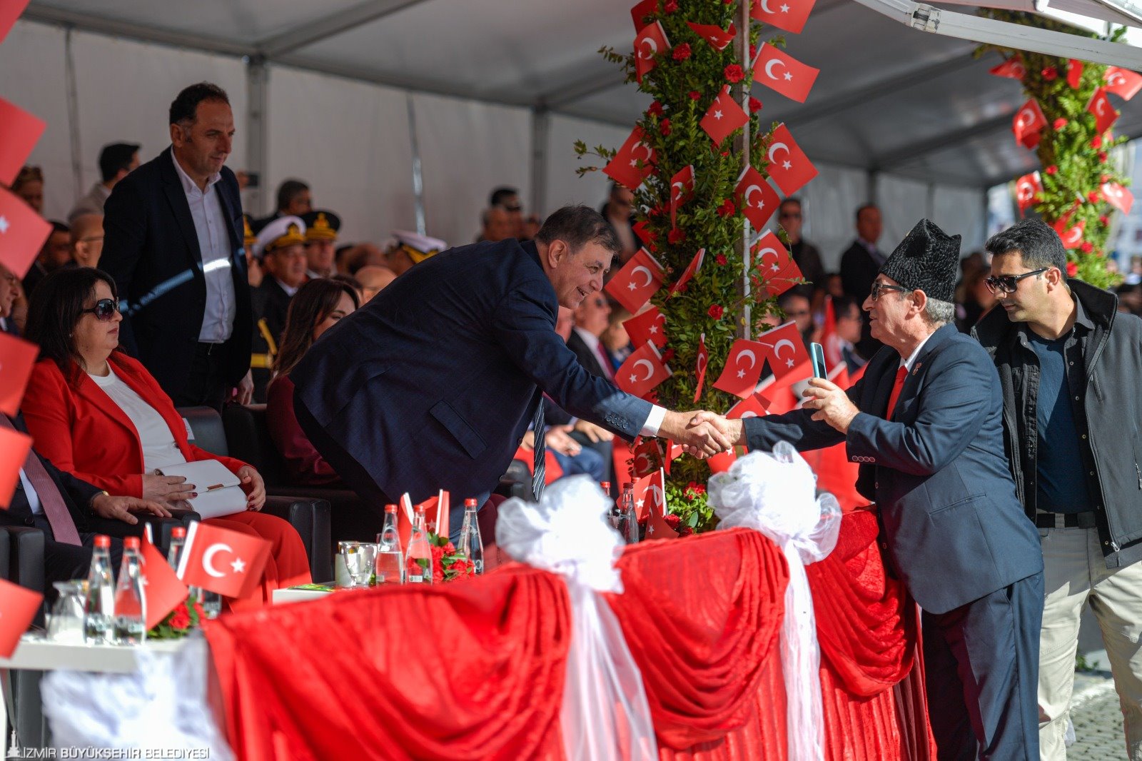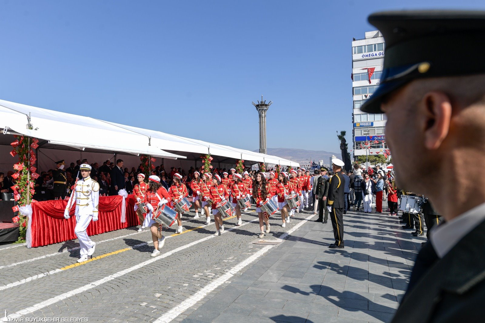 Tören kapsamında Başkan Tugay ve protokol, Cumhuriyet Bayramı vesilesiyle İzmir Valiliği tarafından düzenlenen Zeka Oyunları Turnuvası’nda dereceye giren öğrencilere ödüllerini takdim etti. Kutlamalar resmi geçit törenleriyle devam etti. Türk Silahlı Kuvvetleri Bandosu ve İzmir Büyükşehir Belediyesi Bandosu eşliğinde Türk Silahlı Kuvvetleri, Emniyet Müdürlüğü, İzmir Büyükşehir Belediyesi, üniversiteler, Milli Eğitim’e bağlı okullar, oda, sivil toplum kuruluşu ve dernekler geçit töreninde yer aldı.