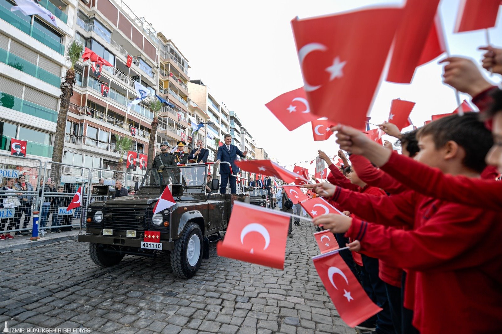 Cumhuriyet’in 101’inci yılını kutlamak için İzmirliler Türk bayrakları, Atatürk posterleri ve tişörtleriyle Cumhuriyet Meydanı ve Kordon’u doldurdu. İzmir sokakları bayraklarla donatıldı. Evlerin balkonlarına Türk Bayrağı ve Atatürk bayrakları asıldı. İzmir Körfezi’nde ise TCG Kınalıada Korveti, Sahil Güvenlik Botları, İZDENİZ gemileri, yelkenler ve çok sayıda deniz aracı ay yıldızlı bayraklarla Cumhuriyet’in 101’inci yaşına selam durdu. Kutlamalar kapsamında gökyüzünde ise 17.30’da Türk Yıldızları nefes kesen gösterileriyle Cumhuriyet Bayramı'nı kutlayacak.