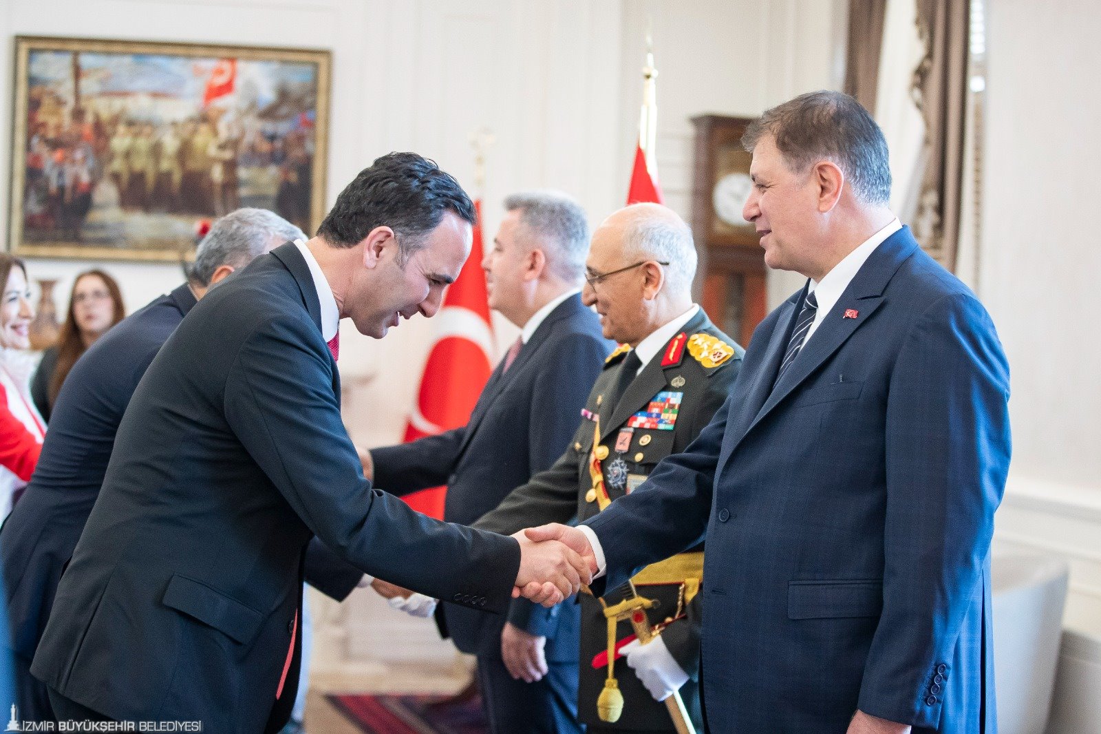 Cumhuriyetin101. yılı İzmir'de büyük bir coşkuyla kutlanıyor. Günün son saatlerine kadar devam edecek 29 Ekim Cumhuriyet Bayramı kutlamalarının ilk adresi İzmir Hükümet Konağı oldu. İzmir Valisi Dr. Süleyman Elban, İzmir Büyükşehir Belediye Başkanı Dr. Cemil Tugay ve Ege Ordusu ve Garnizon Komutanı Orgeneral İrfan Özsert, kamu, siyaset, oda ve sivil toplum kuruluşu temsilcilerinin tebriklerini kabul etti.