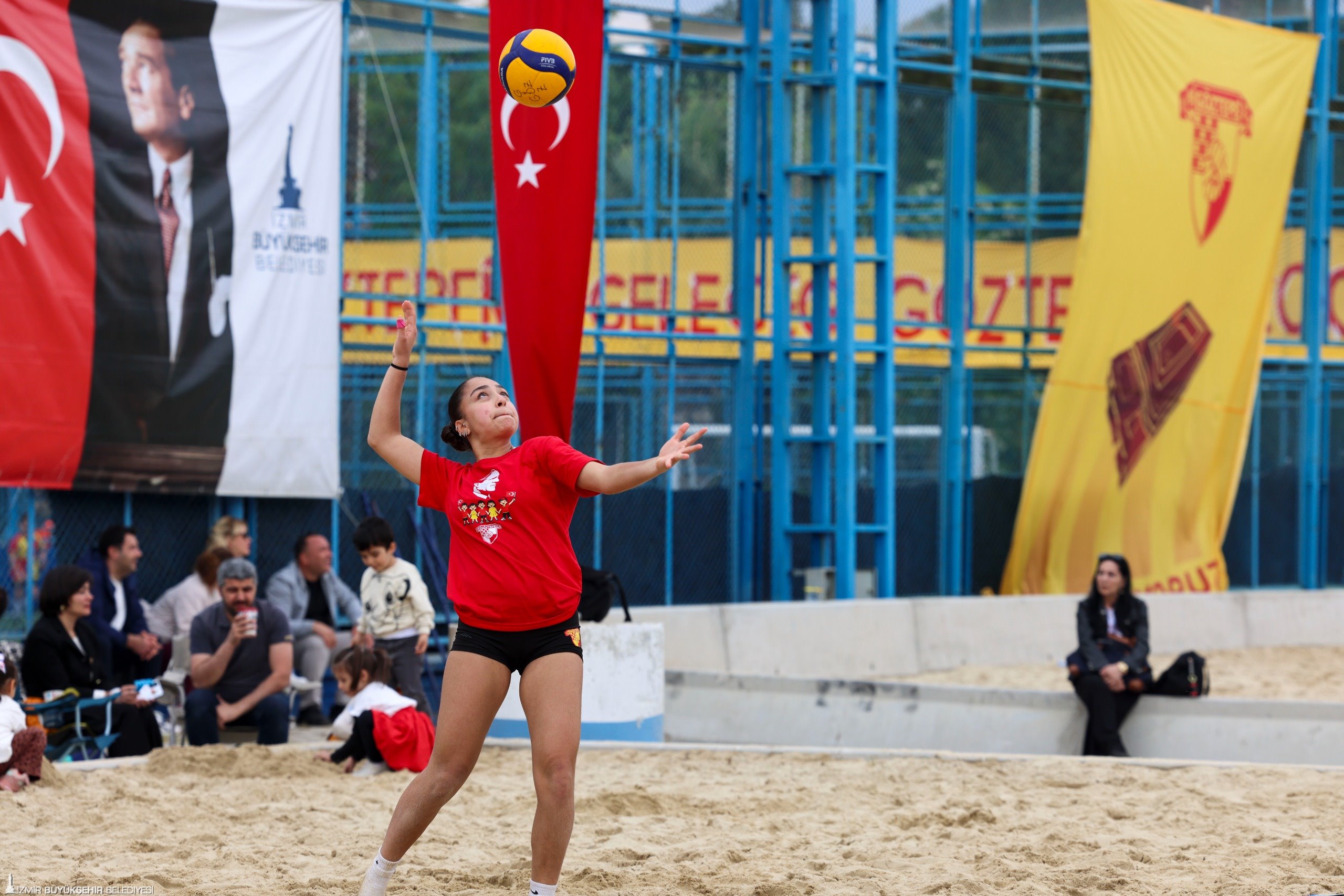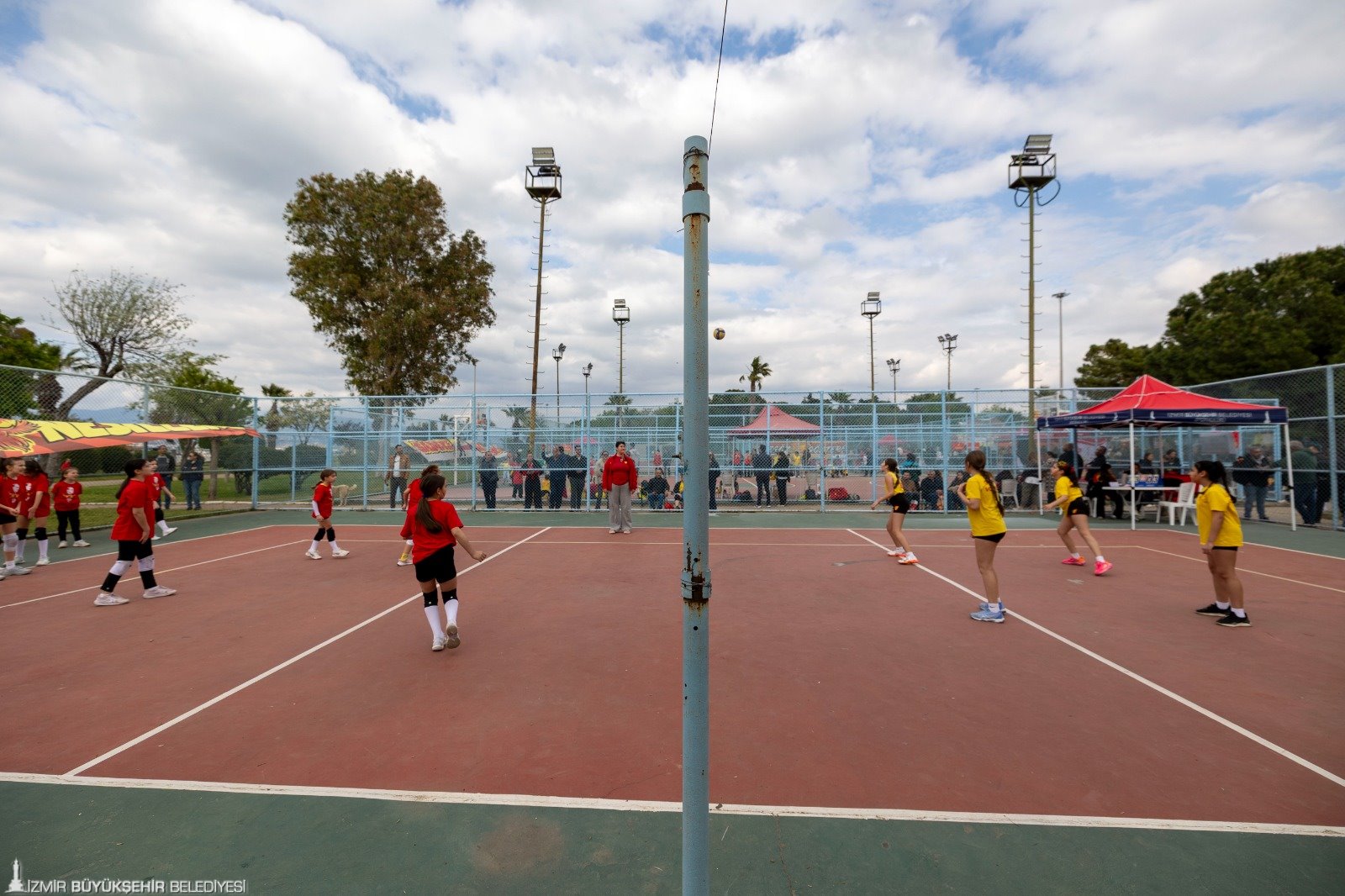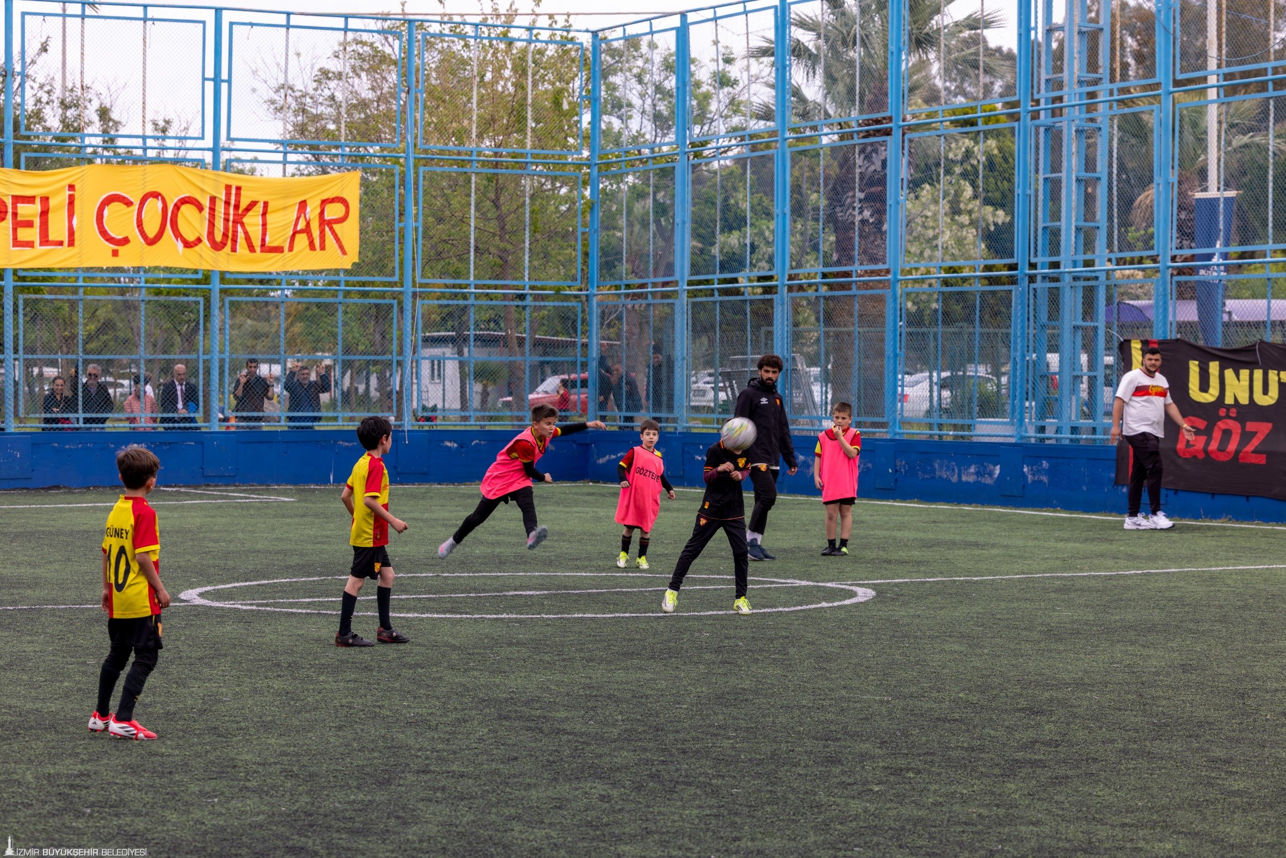 23 Nisan Ulusal Egemenlik ve Çocuk Bayramı, İzmir’de kentin dört bir yanında kutlandı. İzmirli çocukların spora teşvik edilmesine yönelik çalışmalara destek veren İzmir Büyükşehir Belediye Başkanı Dr. Cemil Tugay, İzmir Büyükşehir Belediyesi ile Göztepe Spor ve Eğitim Vakfı iş birliğiyle İnciraltı’nda düzenlenen 23 Nisan Çocuk Şenliği’ne katıldı. Göztepe Spor Kulübü Onursal Başkanı Mehmet Sepil tarafından karşılanan Başkan Tugay, şenlikteki sporcu çocuklar ve aileleri ile Göztepe’nin maskotu K’ANKA ile bir araya gelerek hatıra fotoğrafı çektirdi. Başkan Tugay, Göztepe Spor Kulübü bünyesinde okçuluk, tekvando, bale, jimnastik, voleybol, futbol ve basketbol gibi farklı branşlarda eğitim alan çocukların antrenman ve gösterilerini izledi. Olimpik Branşlar Sportif Direktörü Deniz Durmaz’dan branşlara ilişkin bilgi alan Başkan Tugay, çocuklarla satranç oynadı, futbol sahasında şut çekti ve okçuluk antrenmanına katılarak ok attı. Çocukların yoğun ilgisiyle karşılanan Tugay’a “Cemil Başkan” tezahüratları yapıldı. Şenlikteki çocuklar ve aileler ise spora verdiği destek nedeniyle Başkan Tugay’a teşekkür etti.