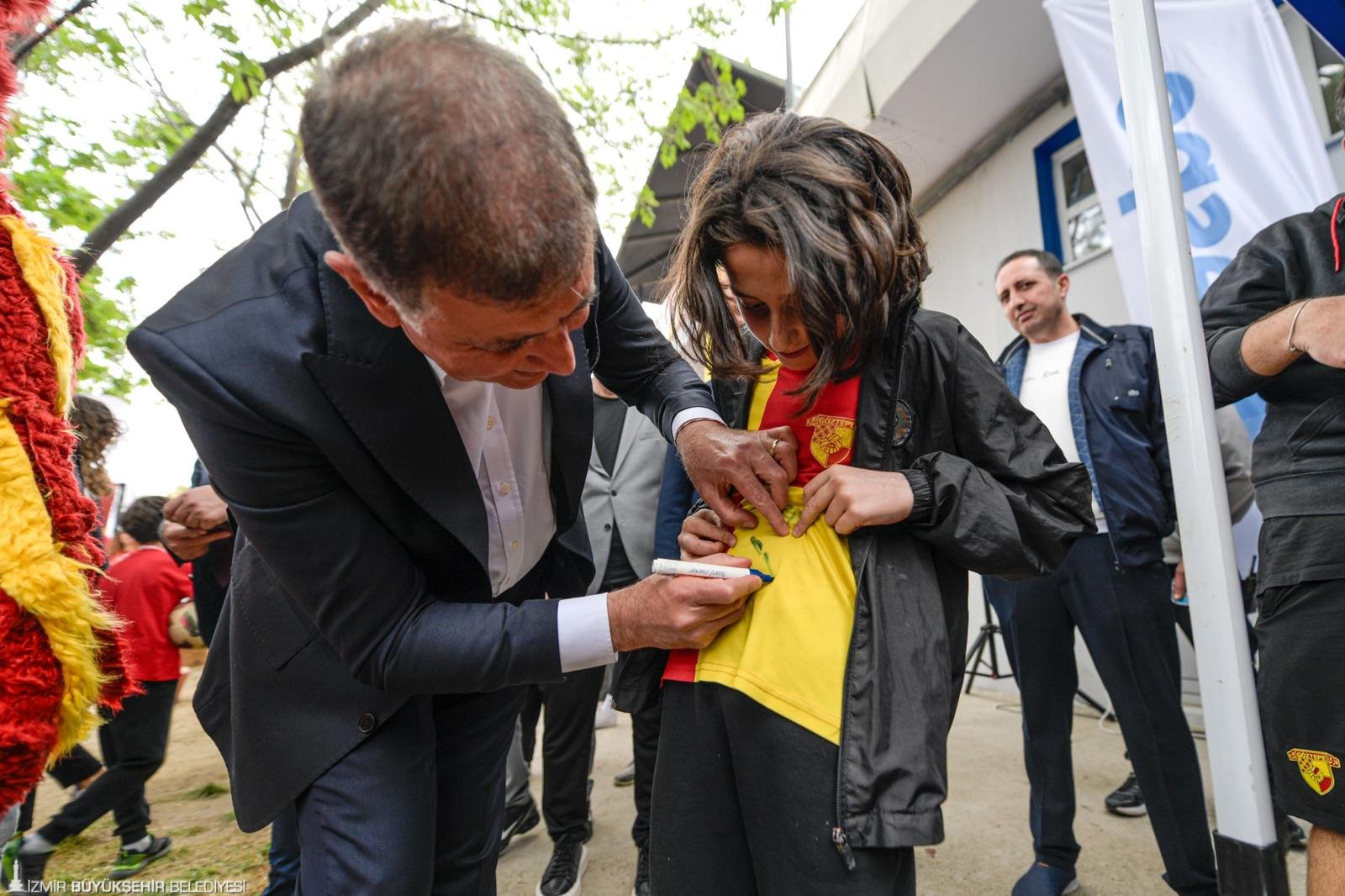 İzmir Büyükşehir Belediye Başkanı Dr. Cemil Tugay, İnciraltı’nda düzenlenen 23 Nisan Çocuk Şenliği’nde sporcu çocuklarla bir araya geldi. Farklı branşlardaki etkinlikleri izleyen Tugay, çocuklarla futbol ve satranç oynayıp ok atarak bayram coşkusuna ortak oldu.