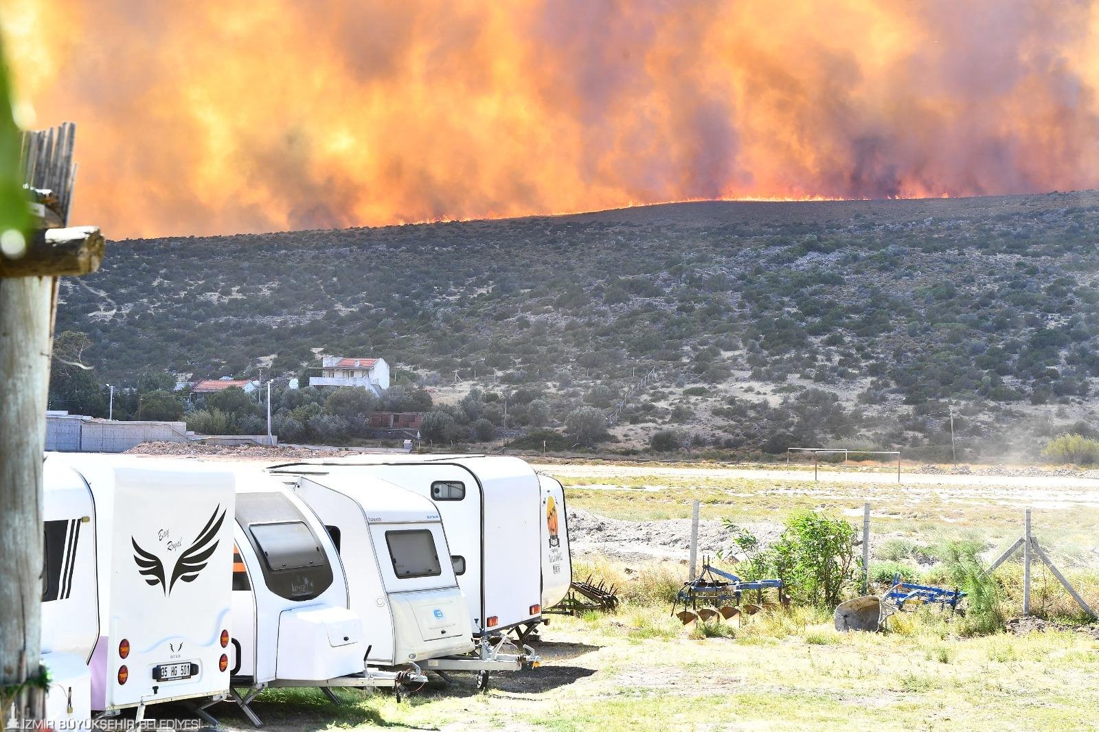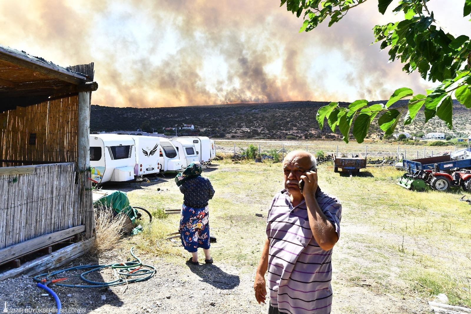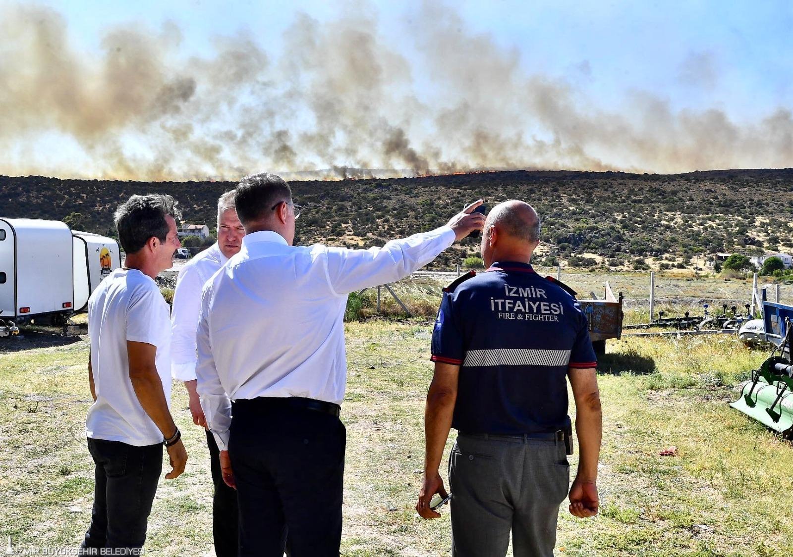 İzmir Büyükşehir Belediyesi'nin tüm gücü ile sahada olduğunu vurgulayan Başkan Cemil Tugay, “Tüm imkanlarımızı kullanarak yangınları durdurmaya çalışıyoruz. Ama çok geniş ve dağınık bir yerde yangın sürüyor. Sönüyor sonra yeniden başlıyor. Ankara Büyükşehir Belediyesi'nin ekipleri burada. Birçok farklı kentten gelen itfaiye ekipleri var. Ama inanılmaz bir dönem yaşıyoruz. Hafta sonundan bu yana yoğun rüzgarlı hava, yangınların kontrol edilmesini çok zorlaştırıyor” ifadelerini kullandı.