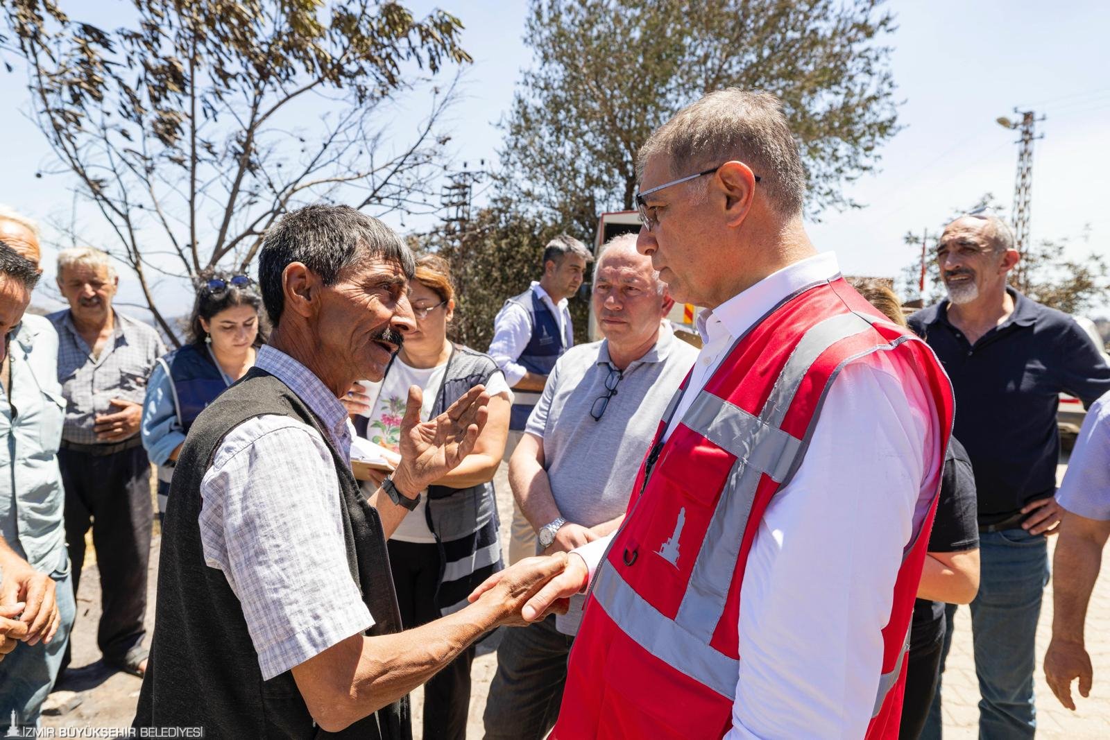 Başkan Tugay, yeni yapılacak evlerin en azından yanmayan çatılara sahip olmasını istediklerini aktararak, “Biraz önce bir vatandaşımız, ‘benim evim yanmadı, çünkü yanmayan türdendi’ dedi. Çoğu ev çatıdan gelen alev nedeniyle yanıyor. Evleri yeniden inşa ederken evleri yangına dirençli hale getirelim, köyün çevresinde yangınla ilgili önlemlerimizi artıralım. Yangının söndürme araçlarının sayısını artıralım. Bunu bütün köylerimizde yapmamız lazım. Önce yanan köylerimizden başlayalım, sonra diğer köylerimizi de bu şekilde rehabilite edelim. Bunu en önemli çalışma konularımızdan birisi olarak gündemimize alacağız” ifadelerini kullandı.