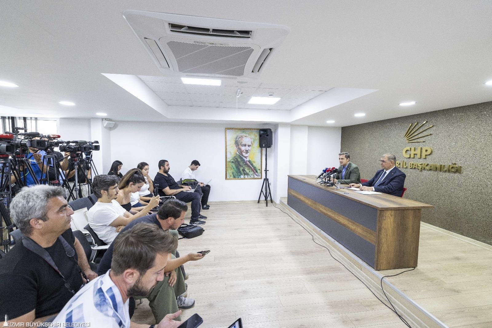 İzmir Büyükşehir Belediye Başkanı Dr. Cemil Tugay ve Cumhuriyet Halk Partisi Sözcüsü Deniz Yücel CHP İzmir İl Başkanlığı’nda basın toplantısı yaparak geçmiş döneme yönelik soruşturma kapsamındaki gözaltı sürecine ilişkin açıklamalarda bulundu.