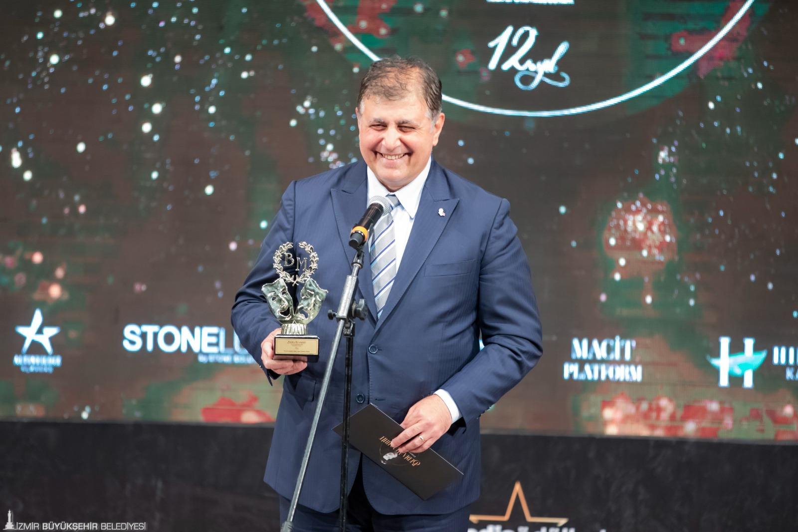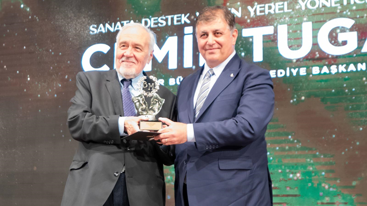 Başkan Tugay’a ödülünü takdim eden Prof. Dr. Ortaylı ise “İzmir, imparatorluğun en bereketli vilayetlerinin birincisiydi. Tiyatro ve operetin kamuya açıldığı ilk merkezdir. İzmir, basın hayatımızda da çok önemli. Sadece Türk basını için değil, Bulgar basının bile ilk numunesi burada çıkmıştır. Her zaman için bu halk, bir Akdeniz liman şehrinin halkıdır. Dünyaya ve yeniliklere açıktır ama maalesef sanatın kurumsallaşması konusunda kesinti dönemleri olmuştur. Bu belki de iktisadi vaziyetle ilgilidir. Artık durum değişiyor. İzmir'in operası var, orkestrası var, hatta mandolin orkestrası var. Bütün bunlarda belediyelerin payını unutamayız. Karşıyaka Belediyesi'ndeki hizmetleri dolayısıyla öne çıkan ve İzmir Büyükşehir Belediye Başkanı olan Cemil Tugay'a, ödülü takdim etmekten onur duyuyorum” ifadelerini kullandı.