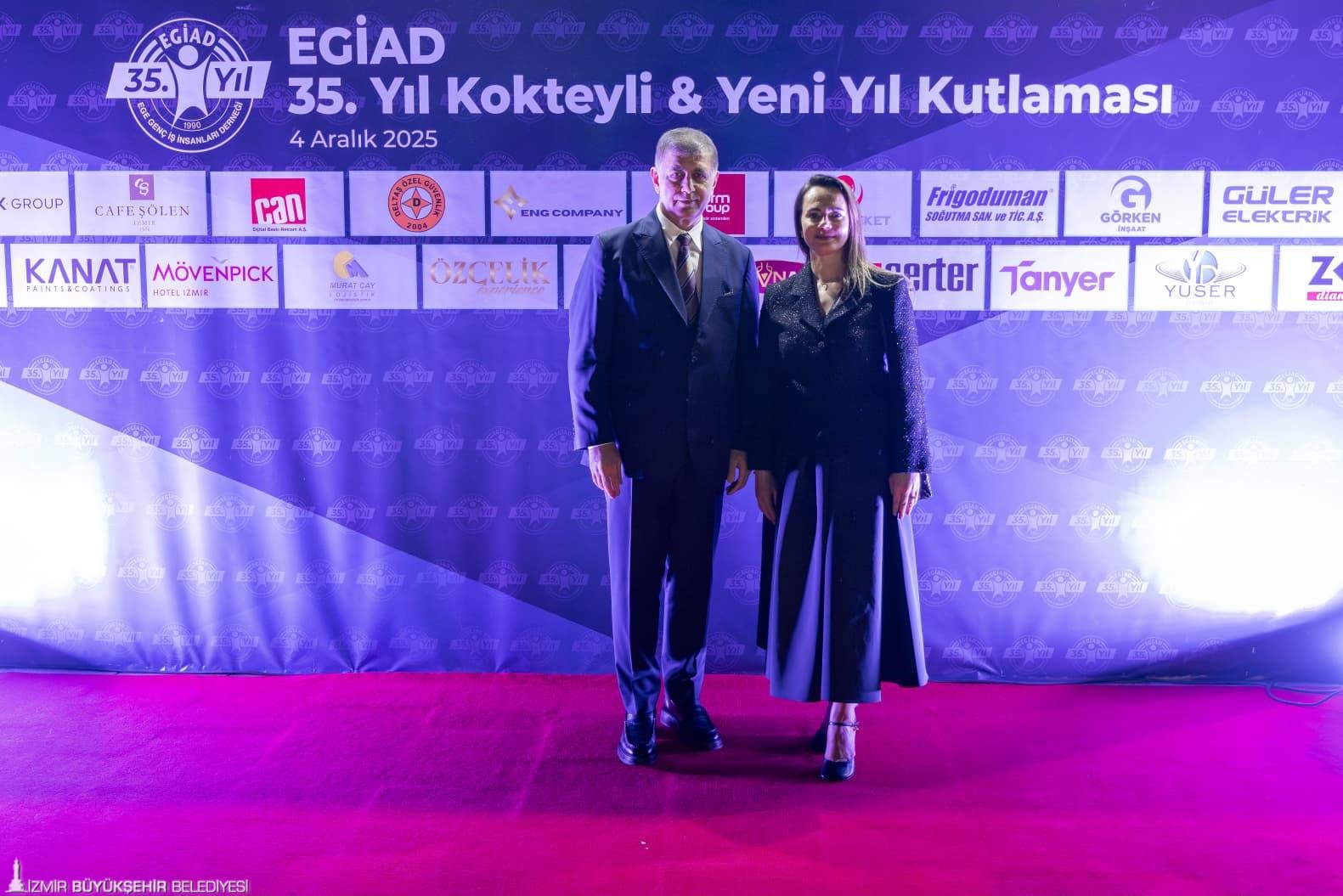 Ege Genç İş İnsanları Derneği (EGİAD) 35. yaşını ve yeni yılı İzmir Tarihi Havagazı Fabrikası’nda düzenlenen geceyle kutladı. Programa İzmir Büyükşehir Belediye Başkanı Dr. Cemil Tugay ile eşi Öznur Tugay, geçmiş dönemlerde EGİAD Yönetim Kurulu Başkanlığı da yapan CHP İzmir Milletvekili Seda Kaya Ösen, EGİAD Yönetim Kurulu Başkanı Kaan Özhelvacı, Ege İhracatçı Birlikleri Koordinatör Başkanı Jak Eskinazi, meslek odalarının, iş dünyasının, kamunun ve yerel yönetimlerin temsilcileri katıldı.