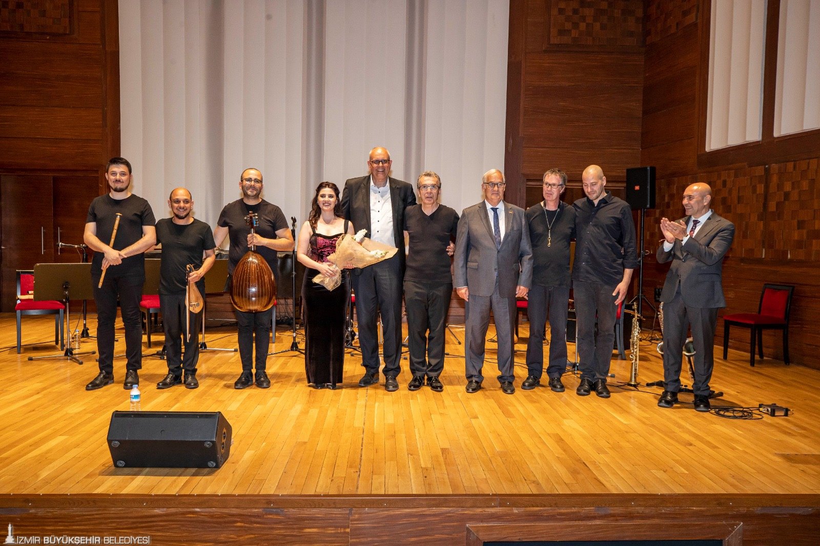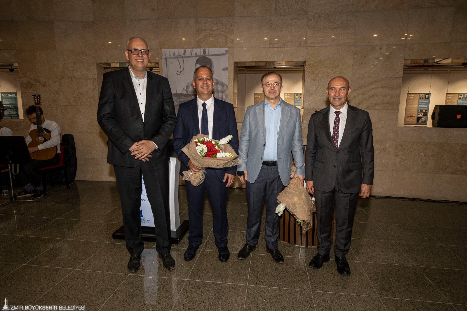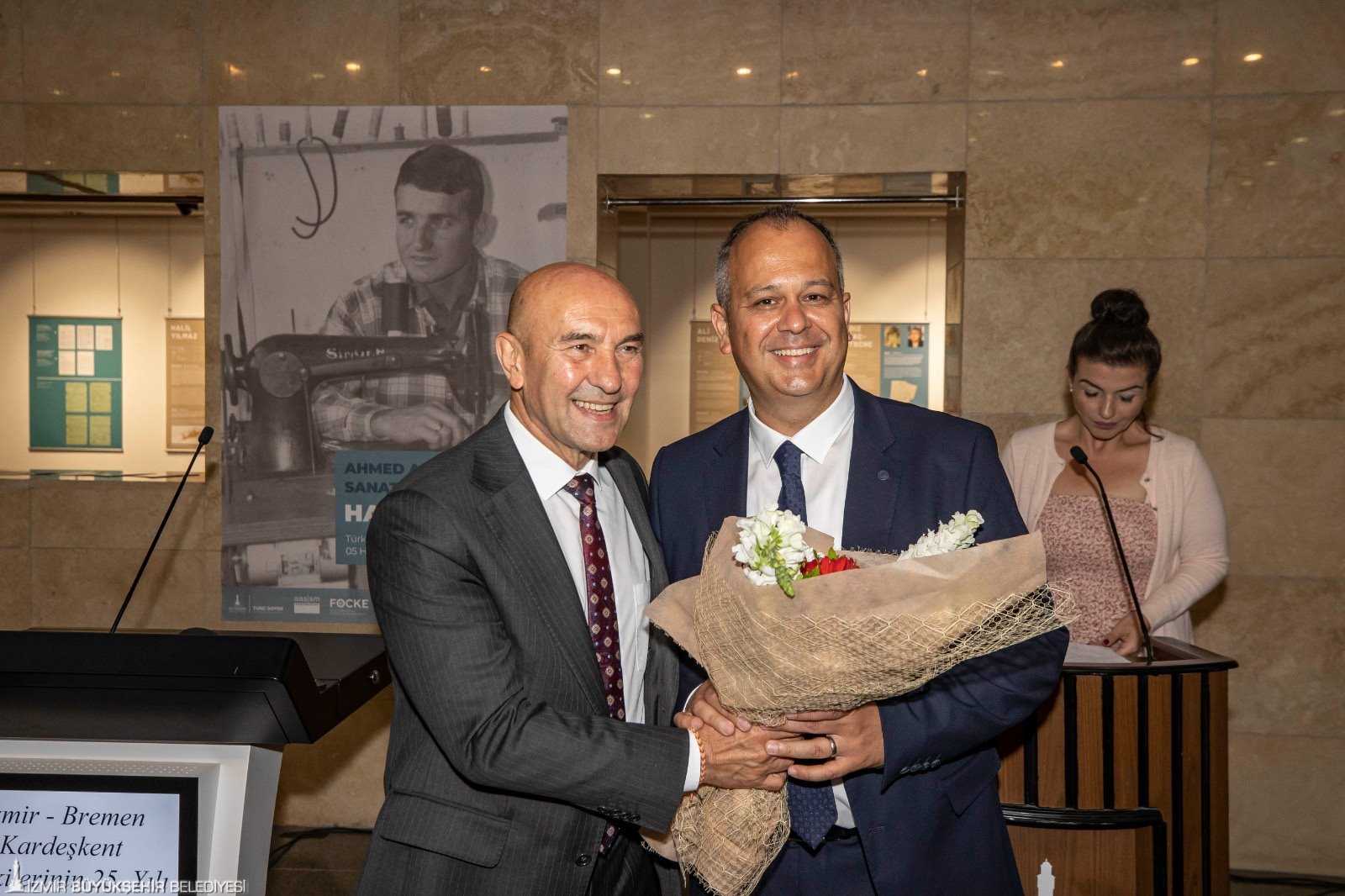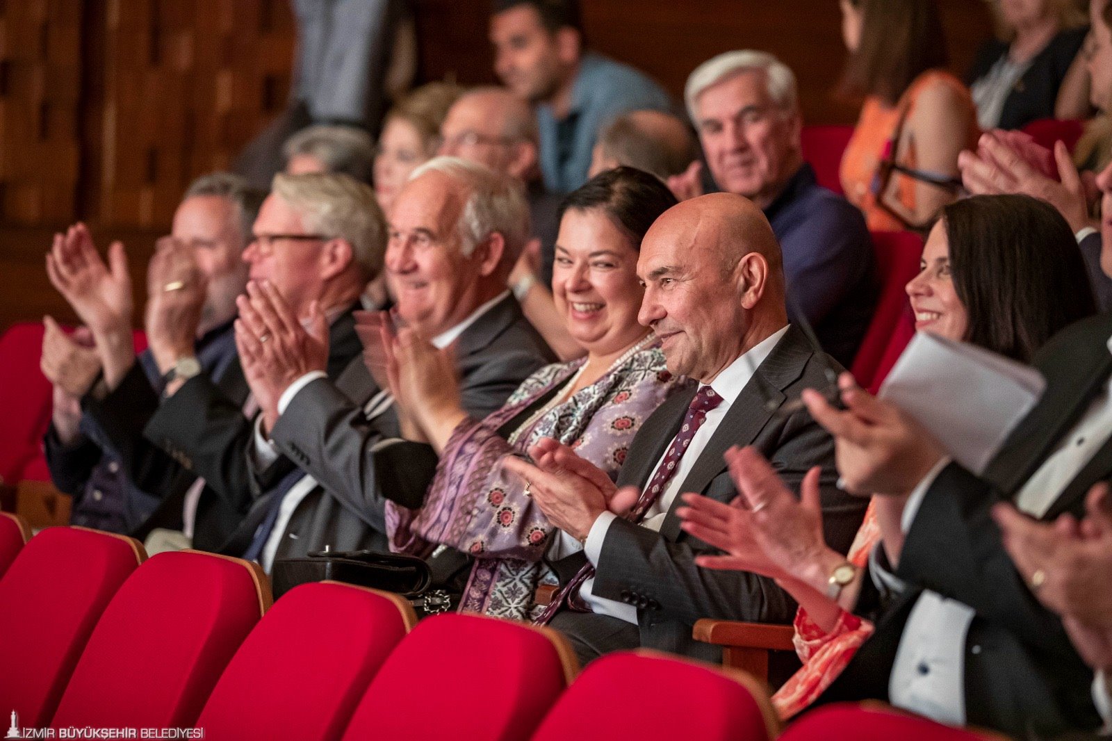 Ahmed Adnan Saygun Sanat Merkezi’ndeki (AASSM) programda Büyükşehir Belediye Başkanı Tunç Soyer’e Almanya İzmir Başkonsolosu Dr. Detlev Wolter, Bremen Belediye Başkanı Dr. Andreas Bovenschulte, İzmir Büyükşehir Belediyesi Genel Sekreter Yardımcısı Ertuğrul Tugay, İzmir Büyükşehir Belediyesi Meclis üyeleri Av.Nilay Kökkılınç ile Mehmet Atilla Baysak ve sanatseverler eşlik etti.