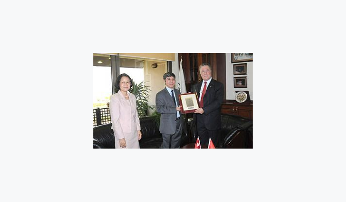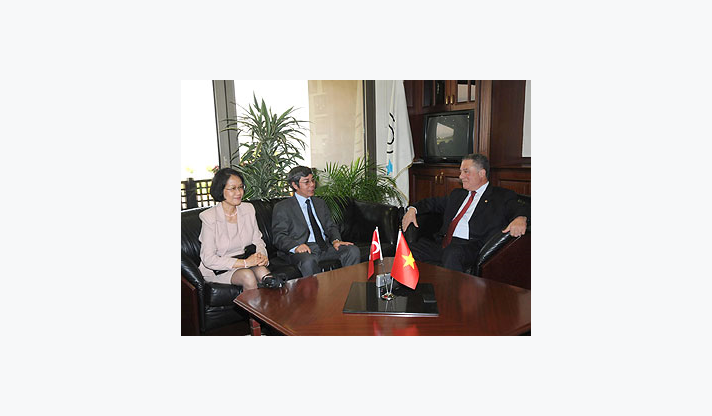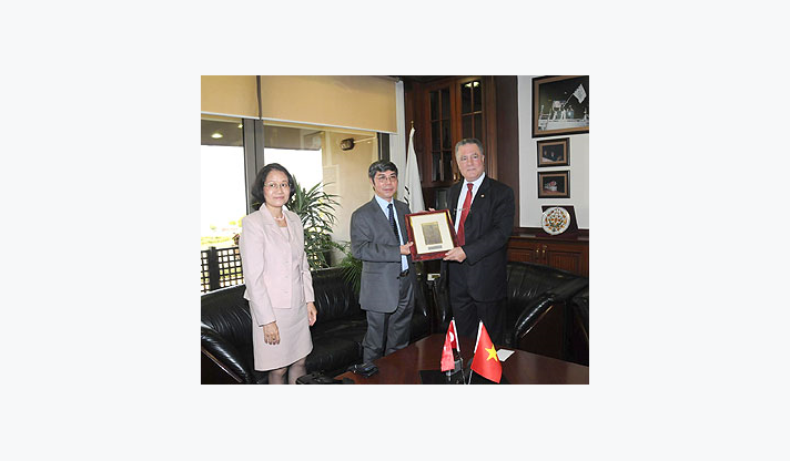 İki ülke arasındaki ticari ilişkilerin geliştirilmesi ve Ekim ayında Türk İşadamları ile birlikte İzmir’de yapılacak ekonomik forumun planlaması amacıyla bir dizi ziyaret gerçekleştirmek üzere İzmir’e gelen Vietnam Ankara Büyükelçisi Duong Huyhn Lap, İzmir Büyükşehir Belediye Başkan Vekili Dr. Sırrı Aydoğan’ı ziyaret etti. Başkan Vekili Sırrı Aydoğan’a Vietnam ekonomisine ilişkin bilgiler veren konuk Büyükelçi, ilk kez ziyaret ettiği İzmir’e hayran kaldığını ve eşiyle birlikte kalış sürülerini uzattıklarını açıkladı.