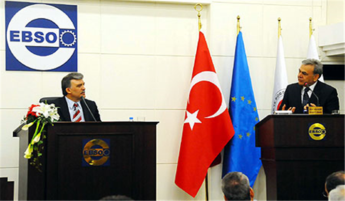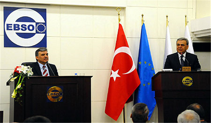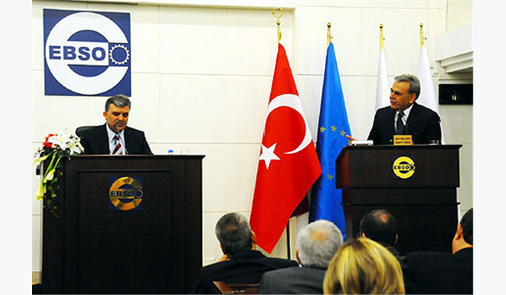 Bir dizi temas için İzmir’e gelen Cumhurbaşkanı Abdullah Gül, Ege Bölgesi Sanayi Odası’nın (EBSO) meclis toplantısında iş dünyası ile bir araya geldi.