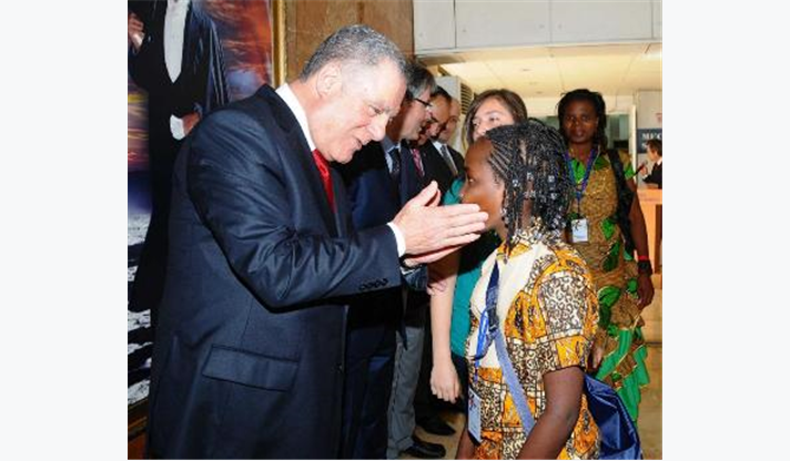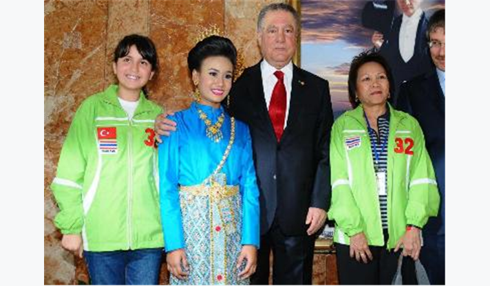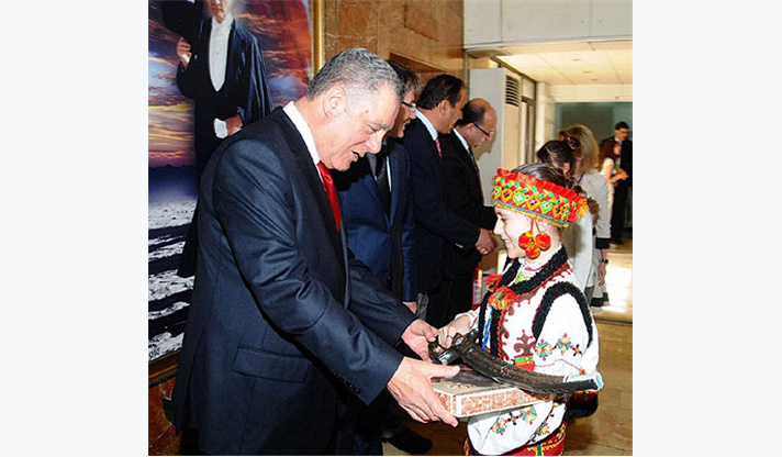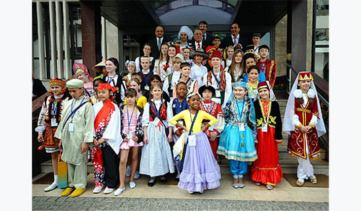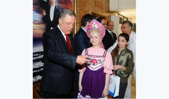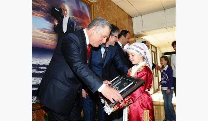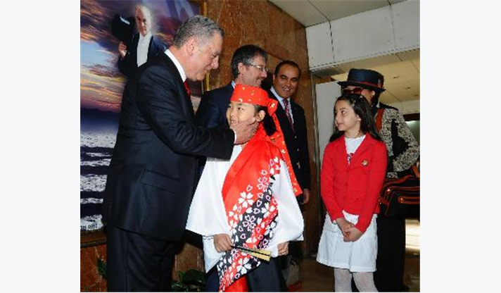 Çeşitli ülkelerden gelerek İzmir’de buluşan çocukları ile ev sahibi minikleri ve takım liderlerini Meclis Salonu’nda ağırlayan İzmir Büyükşehir Belediyesi Başkan Vekili Dr. Sırrı Aydoğan, Türkiye Cumhuriyeti’nin çocuklara armağan ettiği ve dünyadaki tek çocuk bayramı olan 23 Nisan Ulusal Egemenlik ve Çocuk Bayramı’nın, 32 yıldır düzenlenen şenlikle uluslararası çapta kutlandığını hatırlatarak, “İnanıyorum ki, bu bayrama katılan çocuklar, ömürleri boyunca bugünleri hatırlayacak ve dünyada barış elçileri olacaklardır” dedi.Aydoğan konuşmasının ardından, konuk çocuklarla onları ağırlayan İzmirli arkadaşlarını teker teker selamlayarak çeşitli hediyeler verdi. Rengarenk geleneksel kıyafetleri içinde güzel görüntüler oluşturan konuk çocuklar da ülkelerinden getirdikleri hediyeleri Başkan Vekili Dr. Aydoğan’a sundu.