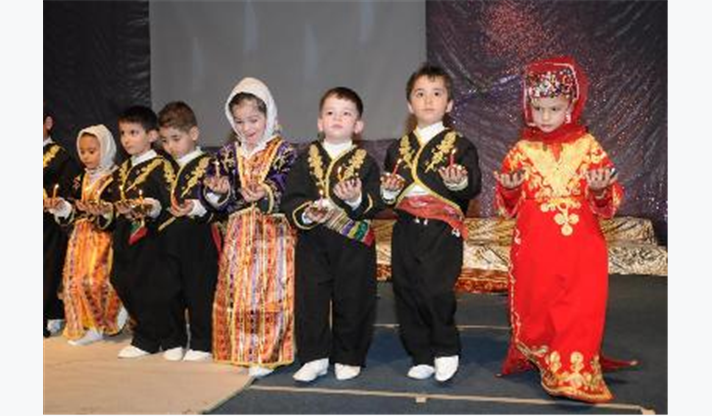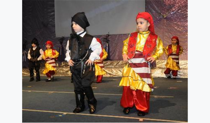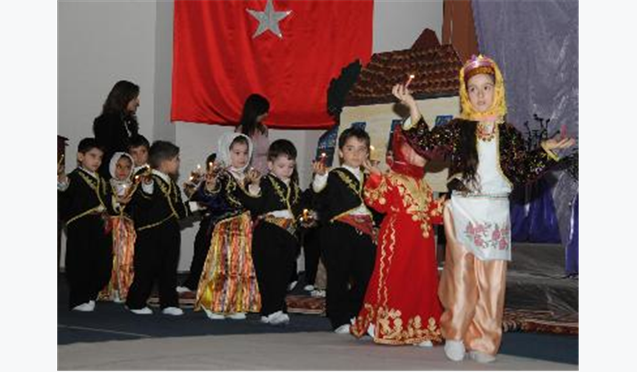 Konuşmaların ardından sahne alan minikler, gösterilerin ilk bölümünde çayda çıra, çiftetelli oyunları ile Üsküp, Karadeniz, Silifke ve Trakya yörelerinin oyunlarını sundu. İkinci bölümde Arap, Latin, Hint, Polonya ve İspanyol dansları ile dünya danslarından örnekler veren minikler ayakta alkışlandı. Gecenin finalinde ise gösteriye katılan bütün gruplar sahneye çıkarak hep birlikte Onuncu Yıl Marşı’nı söyledi.