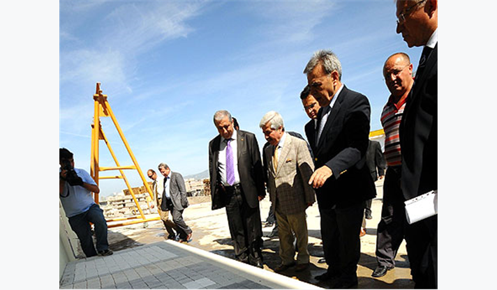 İzmir Büyükşehir Belediye Başkanı Aziz Kocaoğlu, kentin prestij bölgelerinde yapılacak kaldırım düzenlemelerinde uygulanması planlanan taş örneklerini inceledi.