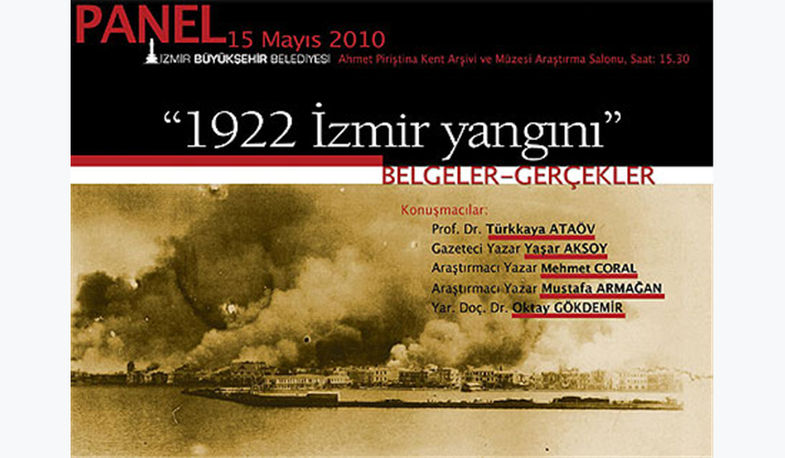 İzmir Büyükşehir Belediyesi Ahmet Piriştina Kent Arşivi ve Müzesi’nde 15 Mayıs 2010 Cumartesi günü saat 15:30’da yapılacak panele konuşmacı olarak, İzmir yangını üzerine Amerikan arşivlerinde ilk çalışmayı yapan Prof. Dr. Türkkaya Ataöv, İzmir yangınının anlatıldığı “Ateşin Gelini” adlı kitabın araştırmacı yazarı Mehmet Coral, gazeteci-yazar Yaşar Aksoy, araştırmacı-yazar Mustafa Armağan ve APİKAM Müdürü Yrd. Dr. Oktay Gökdemir katılacak.