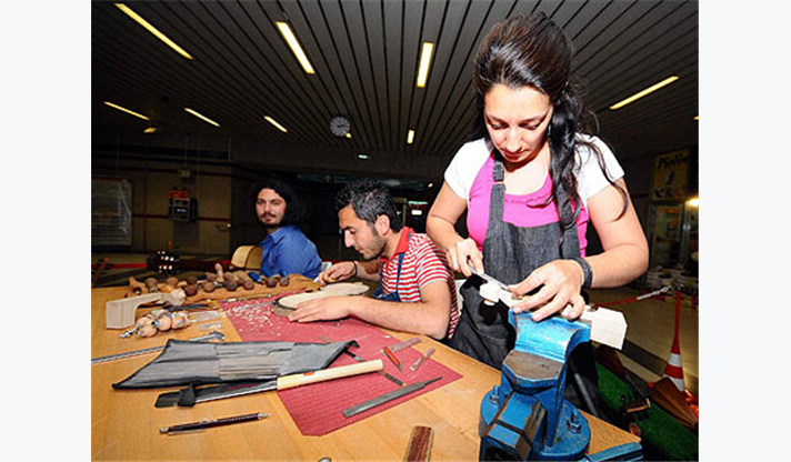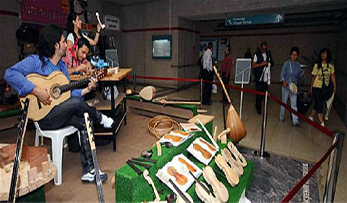 10. yıl etkinlikleri kapsamında Ege Üniversitesi Devlet Türk Müziği Konservatuarı Çalgı Yapım Bölümü öğrencileri de ilginç bir sergiyle yolcuların karşısına çıkıyor. Yıl boyunca yaptıkları bağlama, kanun, ud, lafta, tanbur, gitar, kemençe, tanbur gibi mızraplı ve yaylı çalgıları Konak Metro İstasyonu’nda sergileyen öğrenciler, sergi boyunca çalgı aletlerinin yapımını da canlı gösteriyor. Sergi alanında tezgah üzerinde çalgı yapan öğrenciler, ürettikleri enstrumanlarla da mini konserler vererek İzmirliler’e keyifli dakikalar yaşatıyor. Metro ile seyahat eden vatandaşlar sergiye büyük ilgi gösterirken, dileyenler çalgı yapımı ile ilgili incelikler konusunda öğrencilerden bilgi alabiliyor. Sergi, 27 Mayıs tarihine kadar sürecek.