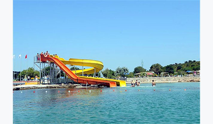 İzmir Büyükşehir Belediyesi’nin “sadece 10 liraya” günlük tatil imkanı sunduğu Urla açıklarındaki Yassıcaada tesislerinde renkli görüntüler yaşanıyor. Bu yıl açılan su kaydırağı, tatilcilerin büyük ilgisini çekiyor.