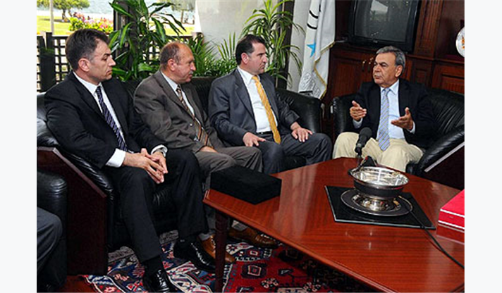 Büyükşehir Belediye Başkanı Aziz Kocaoğlu’nu makamında ziyaret eden Atletizm Federasyonu Başkanı Mehmet Terzi, Güreş Federasyonu Başkanı Dr.Osman Aşkın Bak ile Judo Federasyonu Başkanı Fatih Uysal, İzmir Büyükşehir Belediyesi’nin Türk sporuna yaptığı katkılara övgüler yağdırdı.