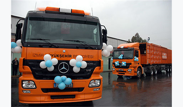 İzmir Büyükşehir Belediyesi; Urla, Türkeli, Kemalpaşa ve Selçuk’ta kuracağı yeni transfer istasyonlarında kullanılmak üzere 5 çekici ile 5 yarı romörk daha alarak filosunu güçlendiriyor