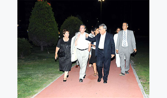 Başkan Aziz Kocaoğlu ile Reis, yemekten sonra Cumhuriyet Meydanı’na gelerek Gündoğdu Meydanı’na kadar kısa bir yürüyüş de yaptı.