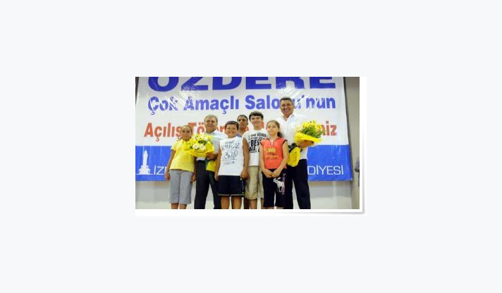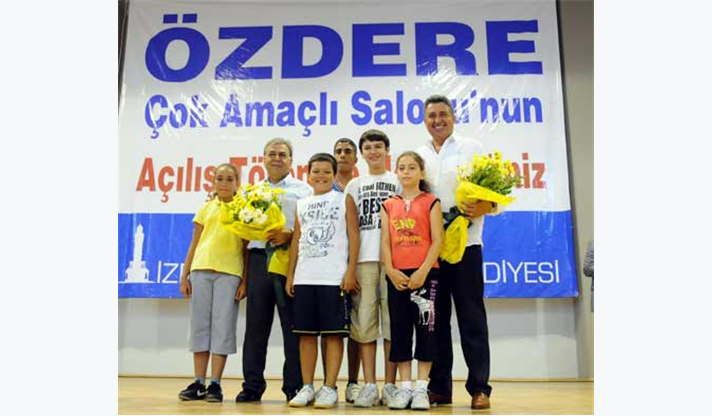 İzmir’in önemli turizm merkezlerinden Özdere de çok amaçlı salonuna kavuştu. Başkan Aziz Kocaoğlu, projesi Büyükşehir Belediyesi tarafından geliştirilen, açılır kapanır teleskopik tribünlü salonun açılış töreninde, bu salonlar sayesinde hem çocuklara ve gençlere spor yapma imkanı tanındığını, hem de tiyatro, konser ve düğün gibi sosyal etkinliklere mekan sağlandığını söyledi.