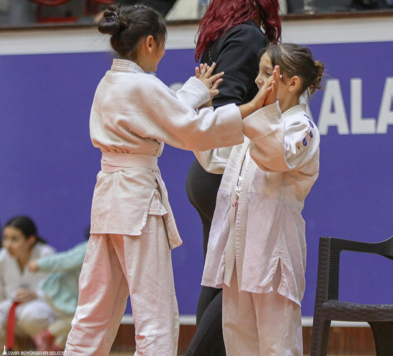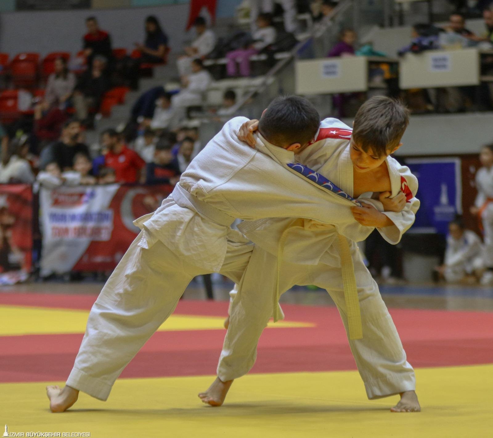 İzmir Büyükşehir Belediyesi’nin Celal Atik Spor Salonu’nda Başöğretmen Gazi Mustafa Kemal Atatürk’ün aziz hatırası için düzenlediği Süper Minikler Judo Turnuvası’nda 25 takımdan yaklaşık 250 minik judocu tatamiye çıktı. Şölen havasında geçen turnuvada minik judocular, gün boyunca birbirinden çekişmeli müsabakalarda yer aldı. Tribünlerin büyük bölümü dolarken, veliler de keyifli karşılaşmaları takip etme fırsatı buldu.