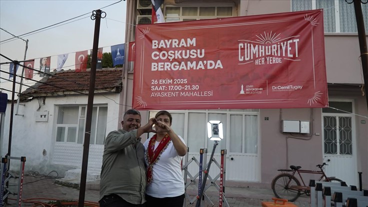 Cumhuriyet Bayramı’nın 102’nci yılı kutlamaları nedeniyle İzmir Büyükşehir Belediyesi tarafından farklı ilçelerde düzenlenen "Cumhuriyet Her Yerde” etkinlikleri tüm hızıyla sürüyor. Bergama Ayaskent Mahallesi'ndeki kutlamalar, Bergama Belediye Bandosu eşliğinde saygı duruşunda bulunulması ve İstiklal Marşı’nın okunmasıyla başladı. Kutlamalara Bergama Belediye Başkanı Prof. Dr. Tanju Çelik ve İzmir Büyükşehir Belediyesi Meclis Üyesi Çiler Gürel de katıldı.