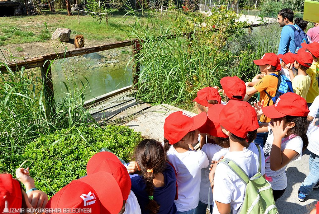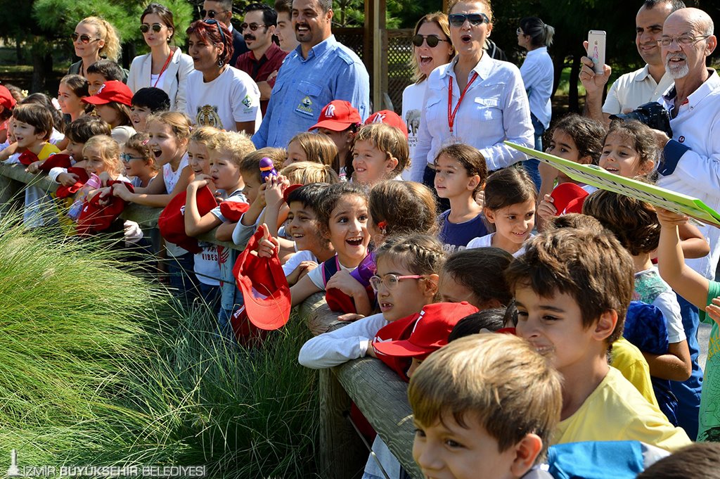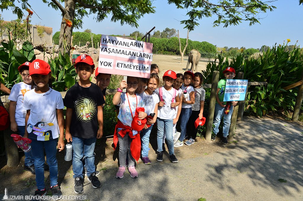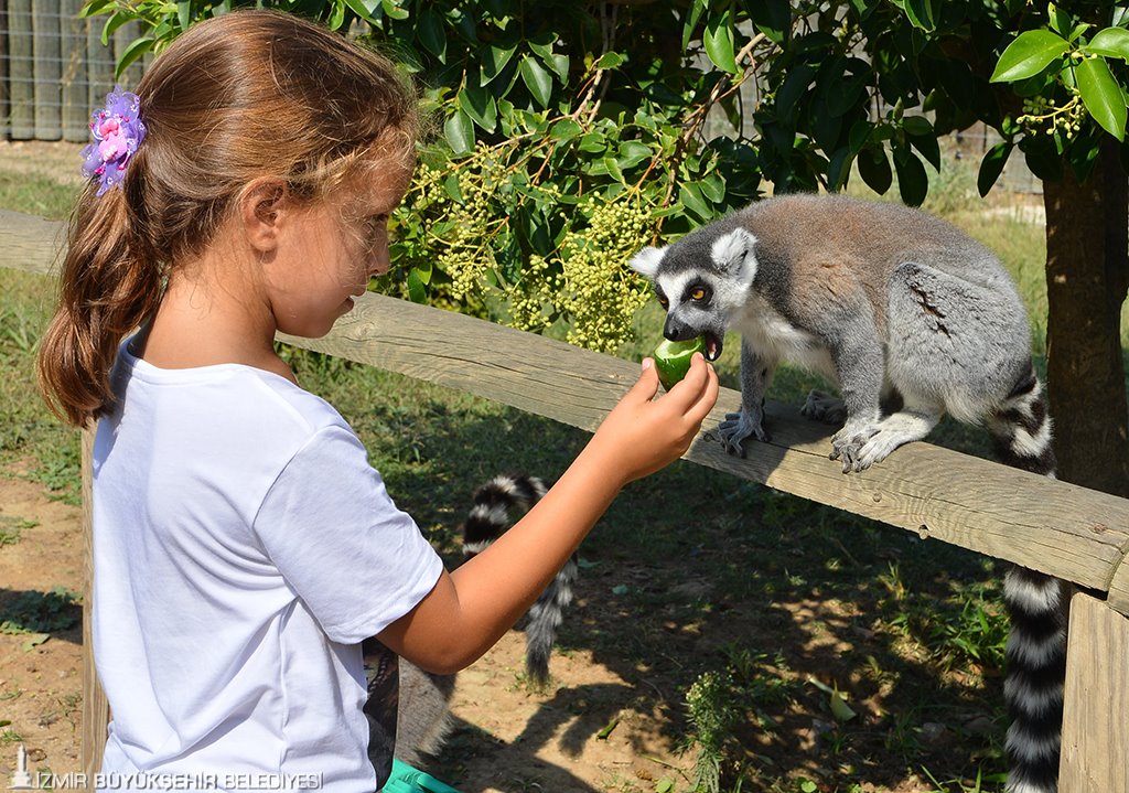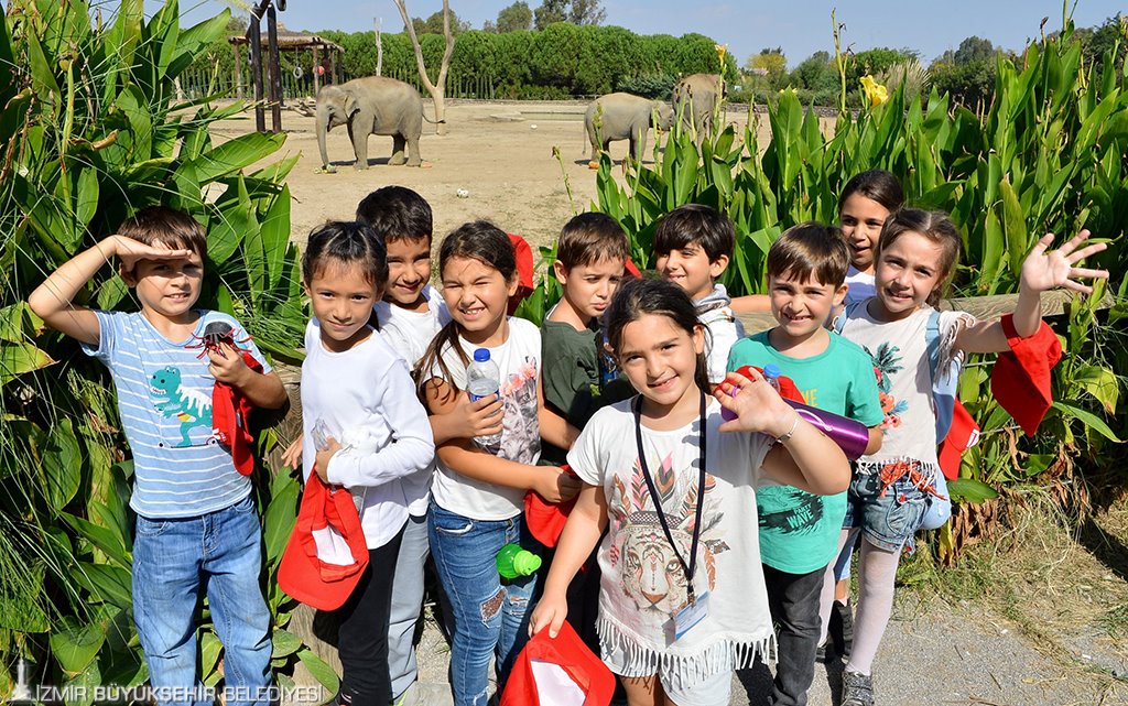 Aslandan zürafaya, fillerden ayıya kadar pek çok türü yakından tanıma fırsatı bulan çocuklar, hayvan figürlü tişörtleriyle dikkat çekti. Kendi elleriyle hazırladıkları bal kabaklı özel menüyle hem lemurları hem de fil ailesini besleme olanağı bulan minik öğrenciler, hayvanların beslenmeleri sırasında da çok keyifli anlar yaşadı. Çocuklar, fillerin barınağına önceden girip hazırladıkları yemekleri alana bıraktı; sonra da fil ailesinin nasıl yemek yediğini gördü. "İzmir" isimli fili sloganlarla karşılayan çocuklar, lemurları elleriyle beslerken de hem heyecanlandı hem de çok eğlendi.
