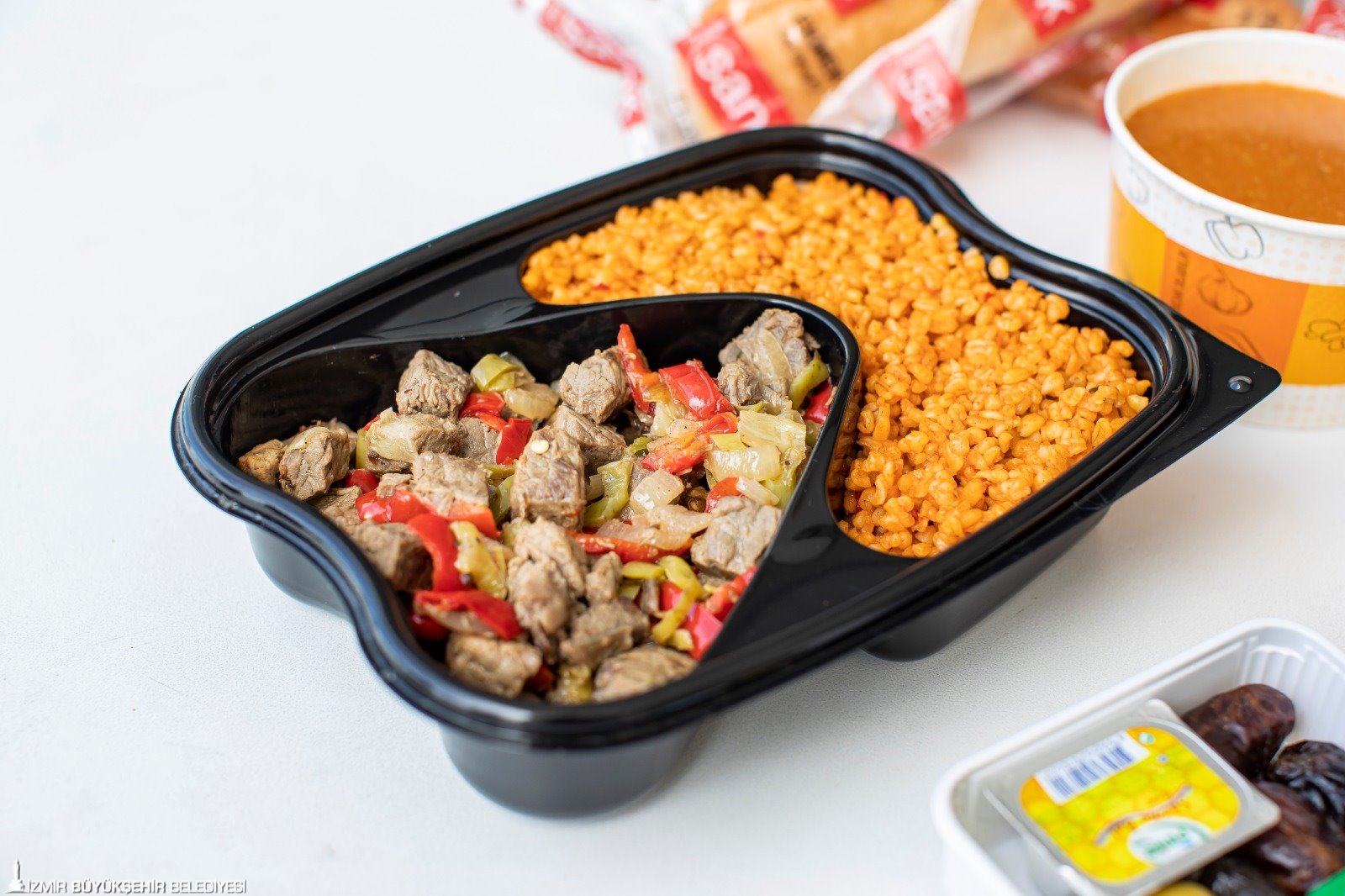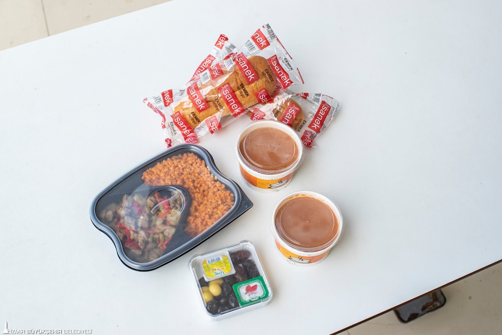 20 lira değerindeki iki kişilik iftar paketinde tarhana çorbası, ana yemek olarak Urla kavurma, günlük olarak değişecek şekilde bulgur, pirinç pilavı ya da makarna, içinde hurma, siyah-yeşil zeytin, bal ve reçel olan iftariyelik ve iki ekmek bulunuyor.