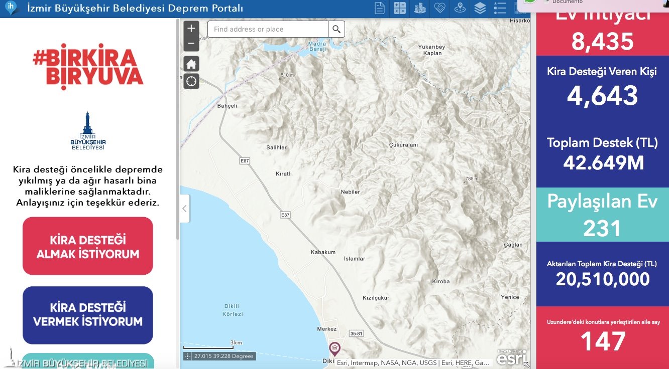 Öte yandan İzmir Büyükşehir Belediyesi 30 Ekim depreminde evleri orta hasarlı olan 629 ailenin 5’er bin liralık kira destek ödemesini tamamladı. Bu hafta içinde evleri orta hasarlı olan 40 ailenin kira yardımı da banka hesabına yatırılmış olacak. Büyükşehir, başvuru ve değerlendirmelere göre kira yardımına devam edecek. İzmir Büyükşehir Belediye Başkanı Tunç Soyer, orta hasarlı ev tespiti yapılmış aileler için belediye bütçesinden her bir haneye 5’er bin liralık kira desteği verileceğini söylemiş, bu kapsamda 35 milyon liralık bir kaynak ayıracaklarını açıklamıştı. Ağır hasarlı binalardaki 179 haneye 10 bin liralık destek ödemesini de kendi bütçesinden yapan Büyükşehir, bu hafta 50 ağır hasar tespiti yapılmış daire sahibinin kira yardımını da banka hesaplarına yatırmış olacak.