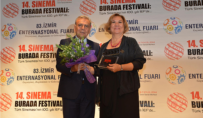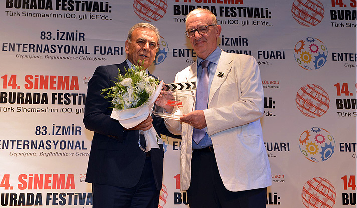 83’üncü İzmir Enternasyonal Fuarı kapsamında düzenlenen ‘14. Sinema Burada Festivali’ Kültürpark İzmir Sanat’ta gerçekleştirilen açılış töreniyle başladı. İzmir Büyükşehir Belediye Başkanı Aziz Kocaoğlu'nun evsahipliği yaptığı törene Fikret Hakan, Tijen Par, Nuri Alço, Halit Akçatepe, Gülsen Tuncer, Necip Sarıcı, Atilla Dorsay, Engin Ayça, Güler Ökten, Prof.Oğuz Makal ile Cahit Berkay katıldı. Tema kapsamında bu yıl “Sinemaya Saygı” adlı altında İzmir’e davet edilen konuklara Başkan Aziz Kocaoğlu tarafından “Emek Ödülü” takdim edildi. Törende, yakın zamanda kaybettiğimiz İzmirli sanatçı Çolpan İlhan da Türk sinemasına katkılarından dolayı “Saygı Ödülü” ile anıldı. Ünlü müzisyen Berkay'ın başta ‘Selvi Boylum Al Yazmalım’ filminin müziklerinden oluşan dinletisi ise konuklara keyifli anlar yaşattı.
