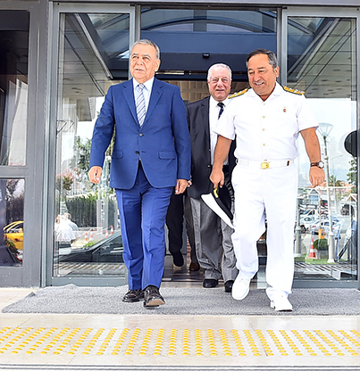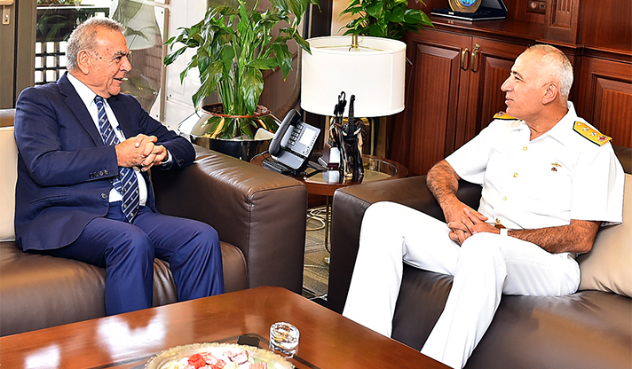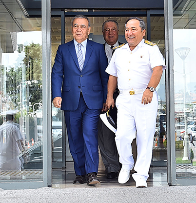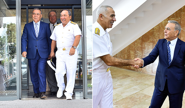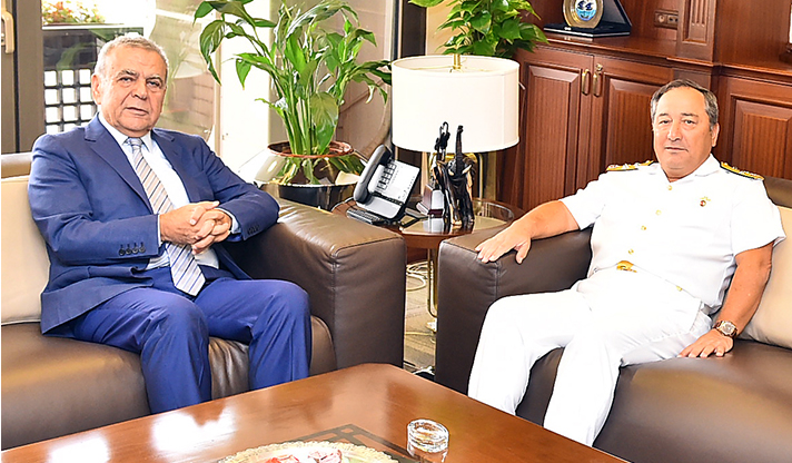 Koramiral Hasan Uşaklıoğlu’nun emekli olmasının ardından Güney Deniz Saha Komutanlığı’na atanan Tümamiral Aydın Şirin de İzmir Büyükşehir Belediye Başkanı Aziz Kocaoğlu’na nezaket ziyaretinde bulundu. İzmir’de hayata geçirdikleri projeleri ve kentte yürütülen çalışmaları aktaran Başkan Kocaoğlu, Tümamiral Şirin’e görevinde başarılar diledi.
