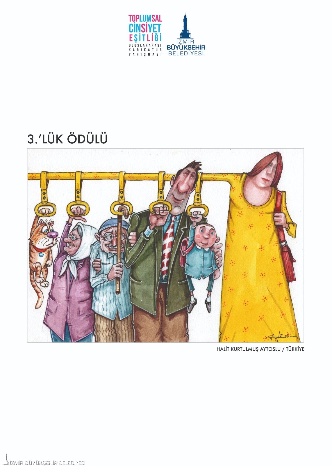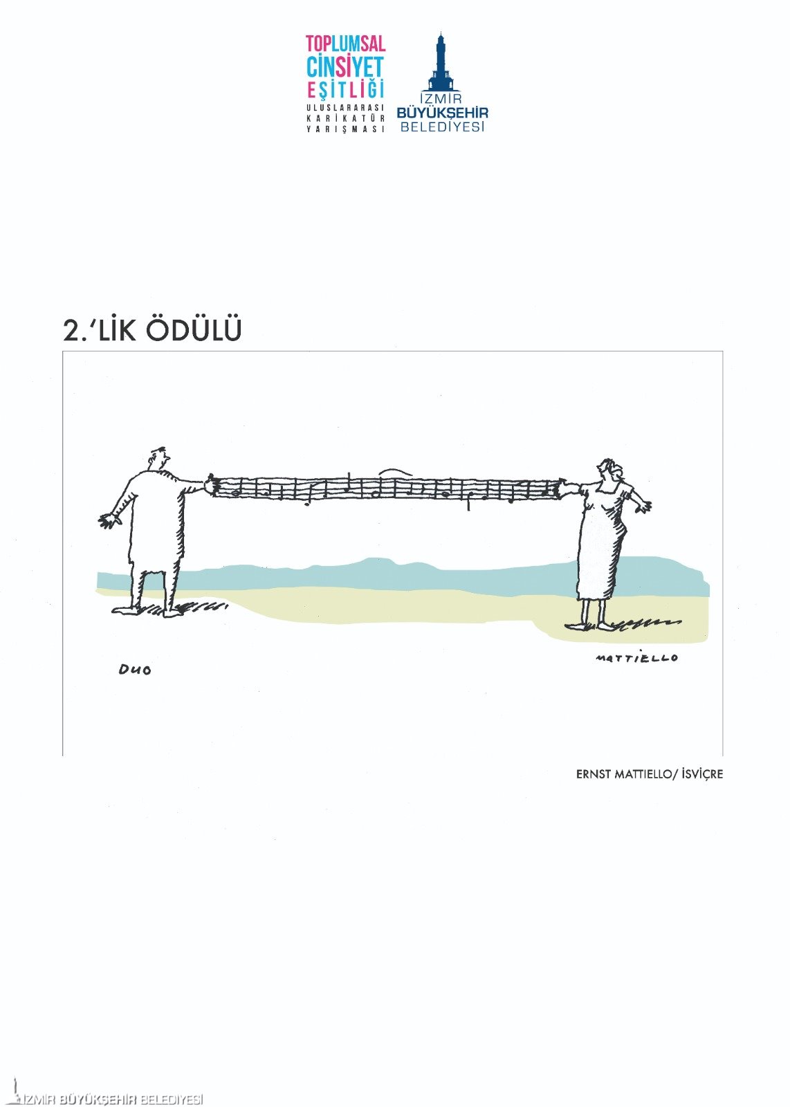 “Kadın dostu kent” unvanıyla önemli çalışmalara imza atan İzmir Büyükşehir Belediyesi’nin düzenlediği Toplumsal Cinsiyet Eşitliği Uluslararası Karikatür Yarışması sonuçlandı. 62 ülkeden 549 çizerin bin 672 eserle katıldığı yarışmada birincilik ödülünü Azerbaycan’dan Seyran Caferli, ikincilik ödülünü İsviçre’den Ernst Mattiello, üçüncülük ödülünü ise Türkiye’den Halit Kurtulmuş Aytoslu aldı. Mansiyon ödülleri ise Belçika’dan Luc Vernimmen, Endonezya’dan Abdul Arif ve Kazakistan’dan Galym Boranbayev’e gitti.