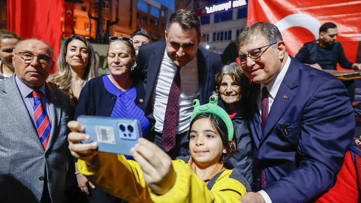 Programda, Aliağalı yurttaşlarla yakından ilgilenen, çocuklarla fotoğraf çektiren Başkan Tugay, 13 yaşındaki Kaan Uçan'ın isteğini kırmayarak, yakasındaki Türk Bayrağı rozetini, hatıra olarak kendisine verdi.