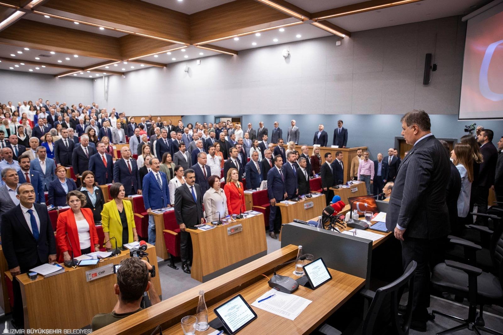 Saygı duruşu ve İstiklal Marşı'nın okunmasının ardından bir konuşma yapan İzmir Büyükşehir Belediye Başkanı Dr. Cemil Tugay, “Bu dönem hepimize hayırlı olsun. Şehrimiz için başarılı çalışmalar yapmayı diliyorum. Her birinize bu demokratik süreçte ortaya koyduğunuz emek, çaba için ayrı ayrı yürekten teşekkür ediyorum. Birlikte güzel bir beş sene geçirmeyi, şehrimizde iz bırakacak güzel çalışmalar yapmayı yürekten diliyorum. Hoş geldiniz, hepimize hayırlı olsun” dedi.