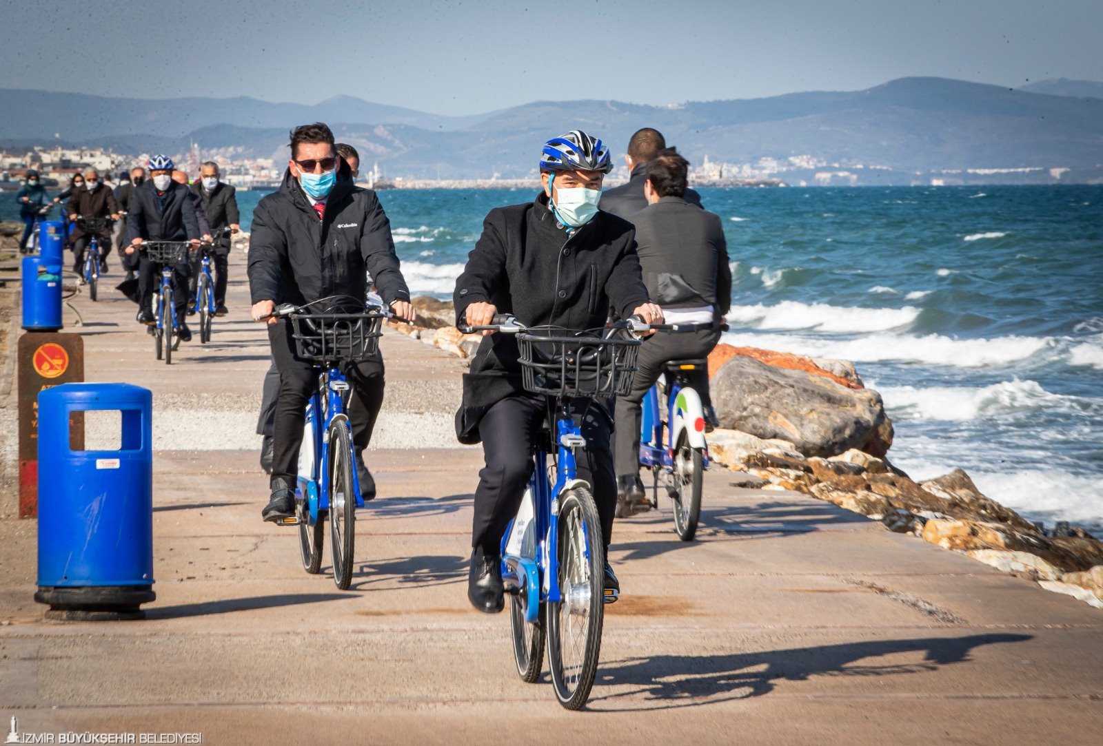 Yeni istasyonlar için Başkan Soyer'e teşekkür eden Güzelbahçe Belediye Başkanı Mustafa İnce, “Bisim Güzelbahçe'nin 7 kilometrelik sahiline çok yakışacak. Kıyı planlarında ilave olarak istenilen ÇED raporunun da sonuçlanmasıyla, başkanımızla planlayacağımız kıyı düzenlemesiyle, yeni bisiklet yolları ve plajlarla, bisiklet bu sahilde çok güzel olacak” dedi.