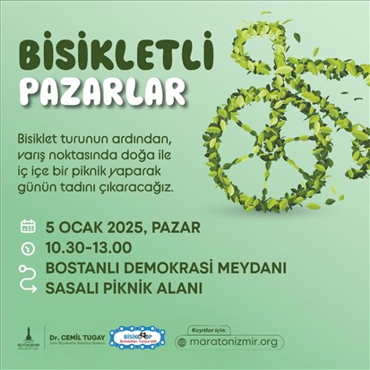 Bisikletliler Kooperatifi (BİSİKOOP) iş birliğiyle 2025 yılı boyunca her ay bir Pazar günü düzenlenecek organizasyon, farklı rotalarda gerçekleştirilecek. İzmirliler, başlangıç noktalarında buluşup kentin güzelliklerinin tadını çıkararak bisiklet sürecek; ardından bitiş noktasında hep birlikte piknik yaparak keyifli bir Pazar günü etkinliğini tamamlamış olacak. İlk sürüş 5 Ocak 2025 günü saat, 10.30’da Bostanlı Demokrasi Meydanı’nda başlayacak ve Sasalı Piknik Alanı’nda sona erecek. Kayıtlar, maratonizmir.org web adresi üzerinden ücretsiz olarak yapılabiliyor.