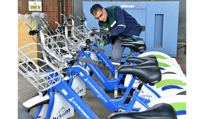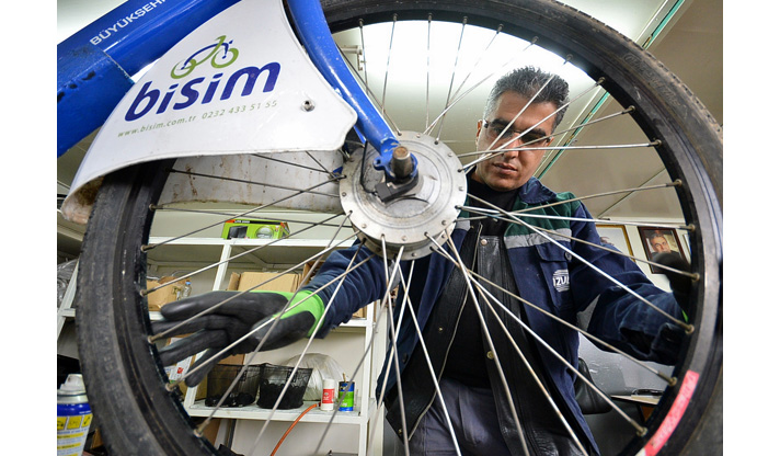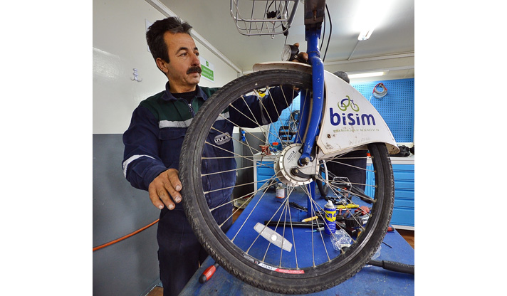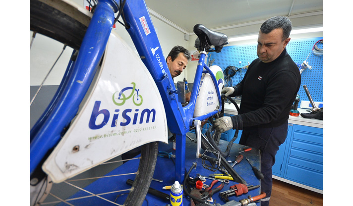 İzmir Büyükşehir Belediyesi, büyük ilgi toplayan bisiklet kiralama sistemi BİSİM’in Halkapınar’daki merkezinde her gün onlarca bisikletin tamiri ve bakımını yapıyor. Arızaların büyük çoğunluğunun bilinçli olarak verilen zararlardan oluştuğunu söyleyen Büyükşehir yetkilileri, “Bisikletlere zarar verenler, maddi kaybın yanı sıra İzmirlileri bisiklet keyfinden de alıkoyuyor. Unutmayalım ki, BİSİM hepimizin” uyarısı yapıyor.