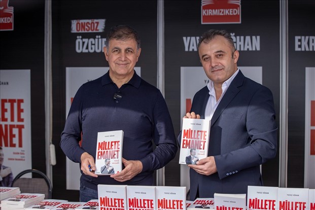 İzmir Büyükşehir Belediye Başkanı Dr. Cemil Tugay, gazeteci Yavuz Oğhan’ın tutuklu İstanbul Büyükşehir Belediye Başkanı Ekrem İmamoğlu’nun yaşamı ve mücadelesini kaleme aldığı “Millete Emanet” kitabını onun adına imzaladı. 6. İZKİTAPFEST kapsamında düzenlenen imza gününe İzmirliler yoğun ilgi gösterirken, Başkan Tugay, İmamoğlu’na destek mesajlarını kabul ederek, “Türkiye’nin hak ettiği özgürlük ortamına kavuşacağına, adaletin yeniden tesis edileceğine inanıyoruz. Uzamış kuyrukları görünce anlıyoruz ki, bu mücadele boşa gitmeyecek. Kime, neyin emanet edildiğini görebilirsiniz. Biz buradayız, mücadeleye devam edeceğiz” dedi.
