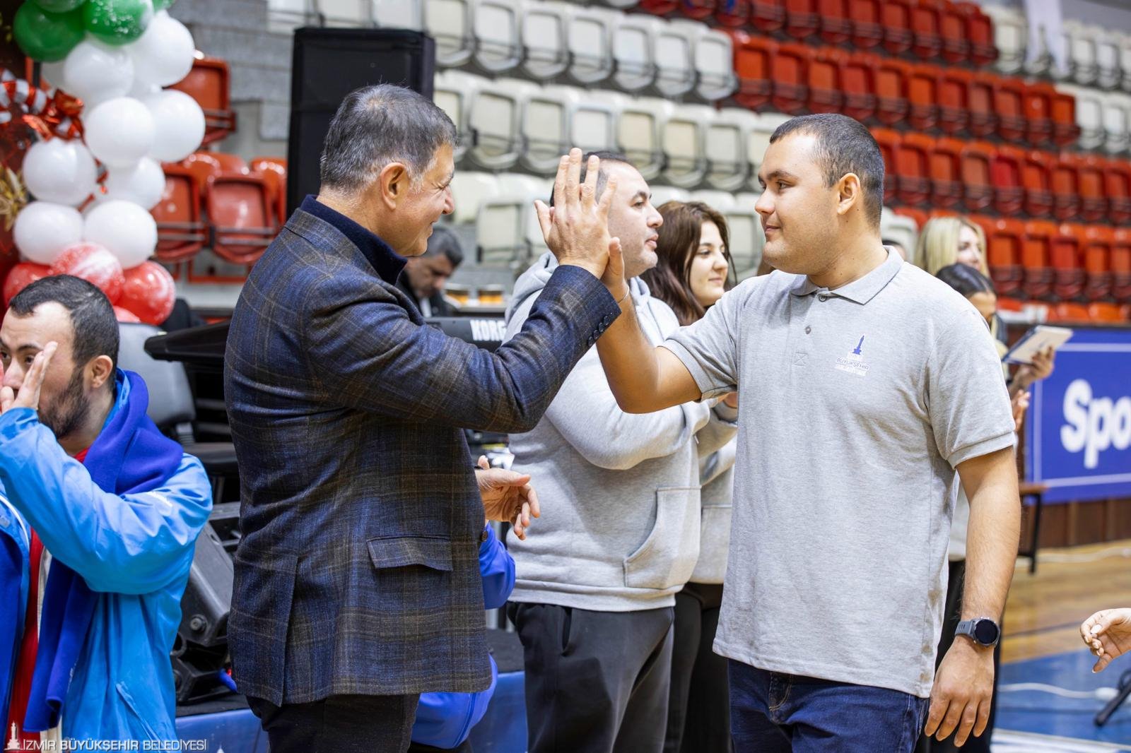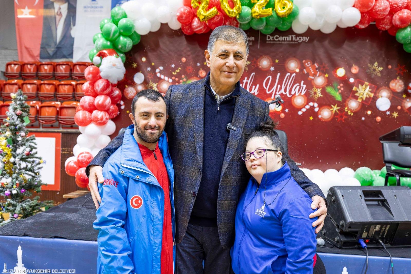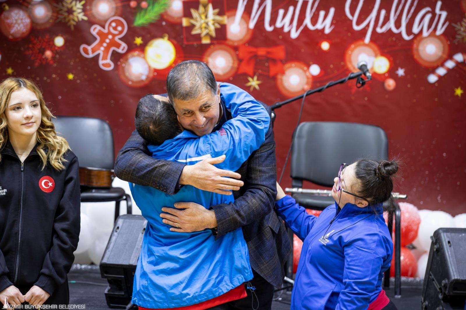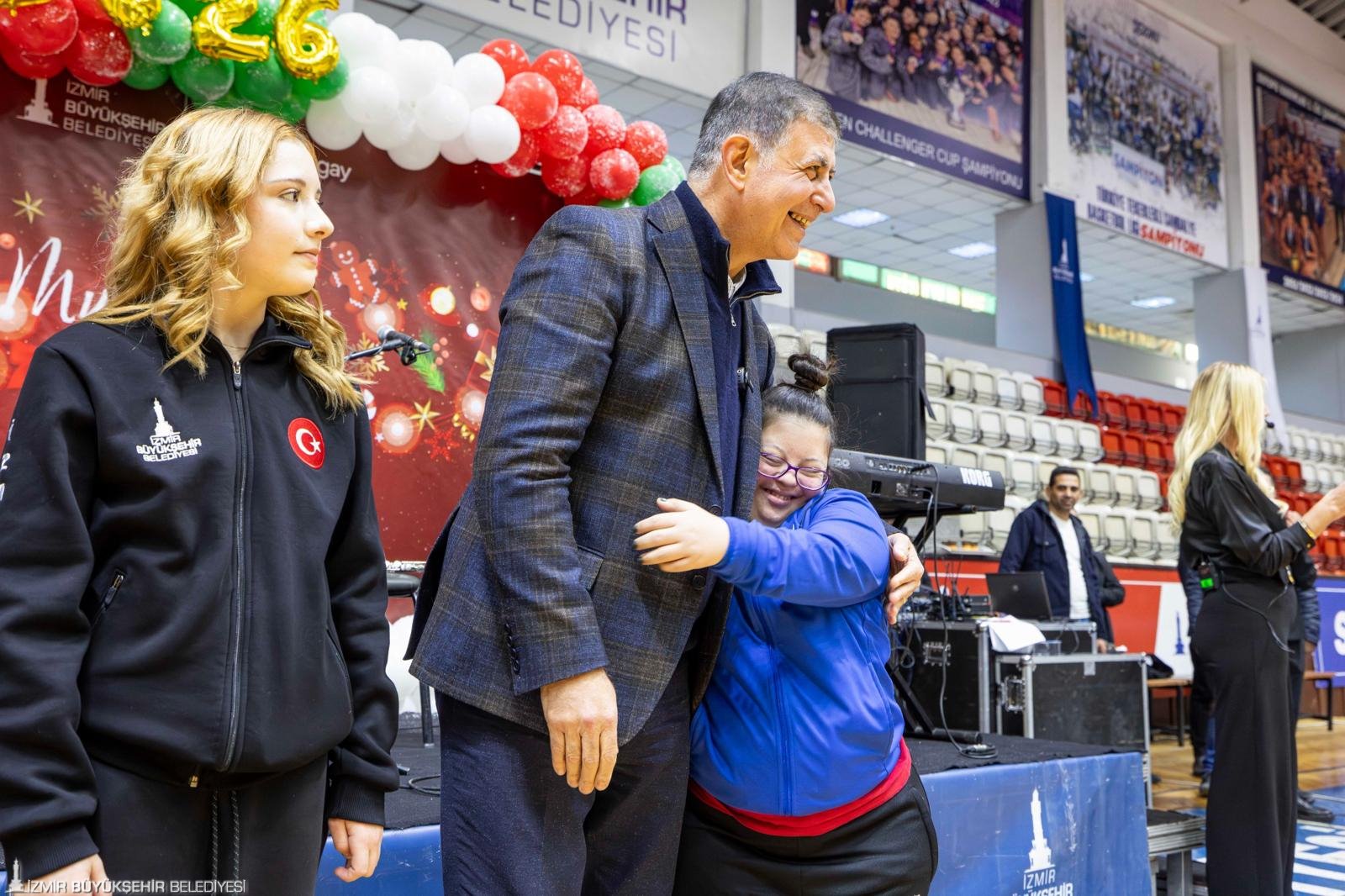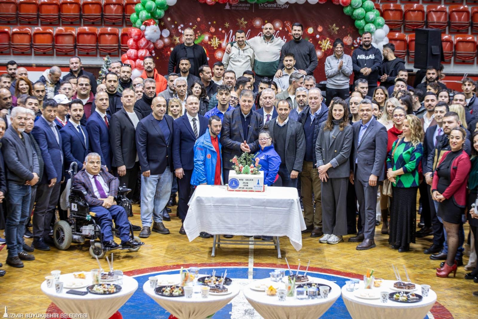 İzmir Büyükşehir Belediye Başkanı Dr. Cemil Tugay, İzmir Büyükşehir Belediyesi Gençlik ve Spor Hizmetleri Dairesi Başkanlığı ile Spor Kulübü’nün yönetici ve personeliyle yeni yıl öncesi bir araya geldi. Kültürpark Celal Atik Spor Salonu’nda düzenlenen buluşmaya bürokratlar, antrenörler, uluslararası başarı elde etmiş sporcular ve aileleri katıldı. Program, yeni yıla özel jimnastik gösterisiyle başladı. Tüm yıl boyunca sporun ve sporcunun yanında olan Başkan Tugay’a, saha çalışmaları ve yarışmalardaki destekleri için yeni yıl hediyesi takdim edildi. Ayrıca 2025’te uluslararası arenada madalya kazanan sporculara da hediyeler verildi.