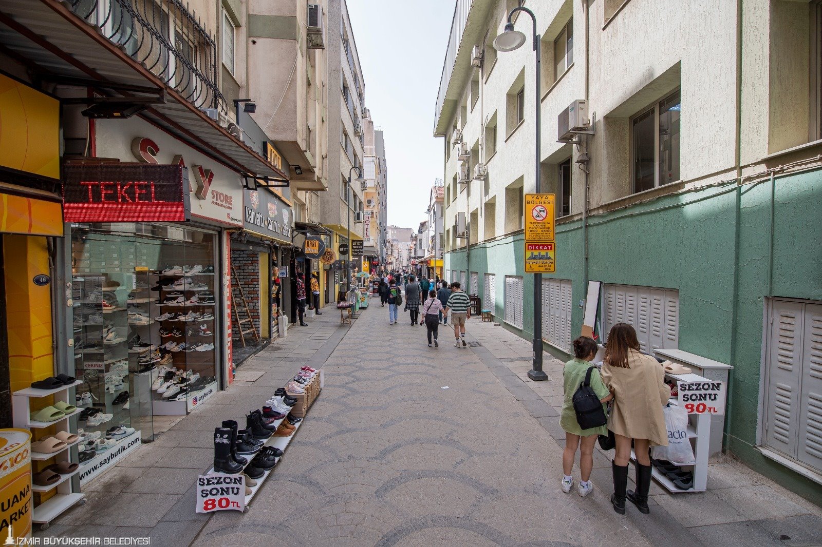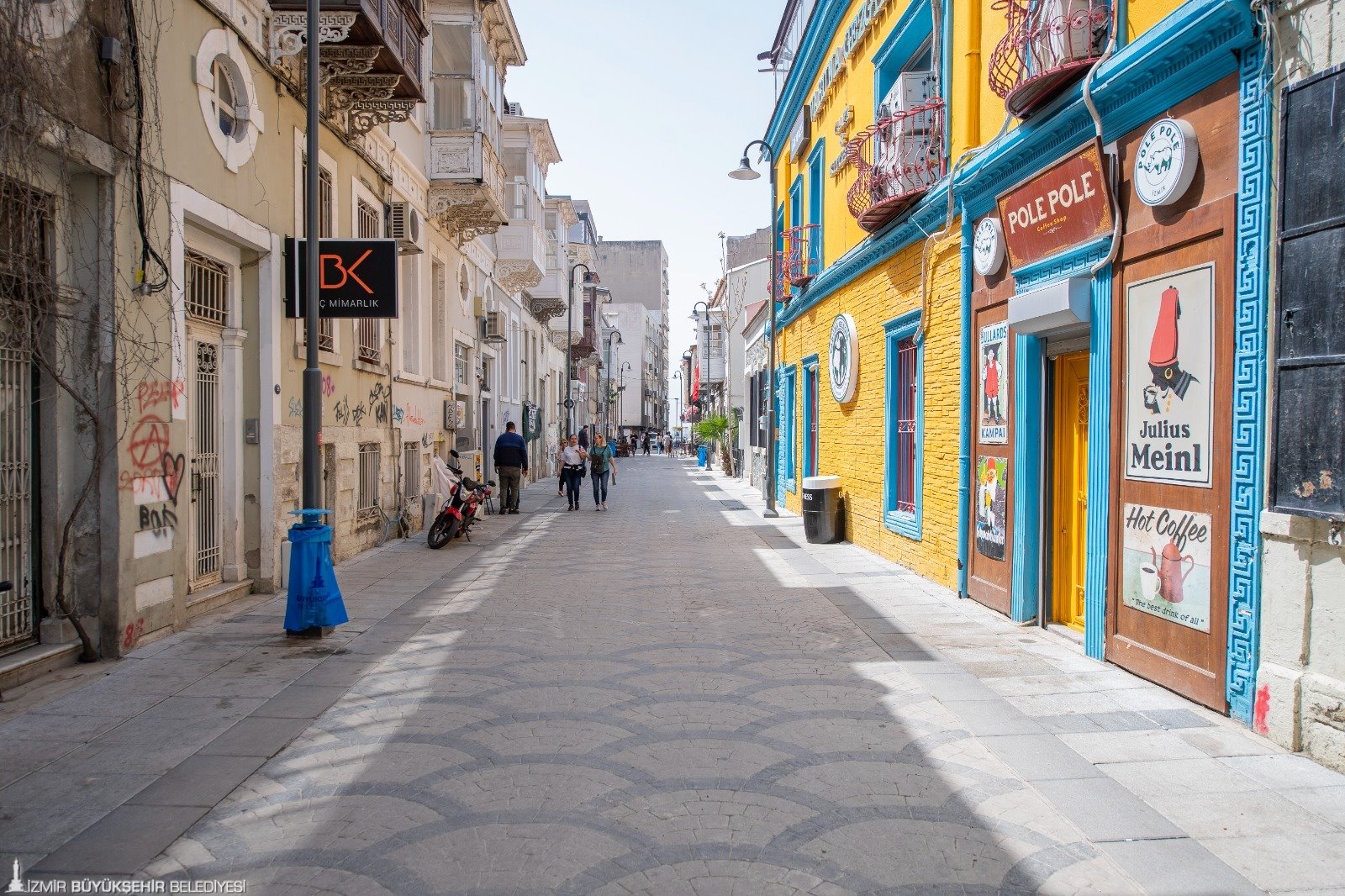 İzmir Büyükşehir Belediye Başkanı Tunç Soyer’in “yaya öncelikli kent” ilkesi doğrultusunda Alsancak’ın tarihi aksındaki Bornova Sokağı (1469. Sokak) yayalaştırma çalışmaları tamamlandı. Tarihi sokağın canlandırılması ve konforlu yaya ulaşımının sağlanması için geçen yıl kasım ayında başlatılan yenileme çalışmalarının ardından sokak bambaşka bir çehreye büründü. Bornova Sokağı, UKOME kararıyla esnafın ve yurttaşın indirme-bindirme, yükleme-boşaltma işleri için yalnızca 04.00-10.00 saatleri arasında araç trafiğine açık şekilde hizmet vermeye başladı. Alsancak Tren Garı ile Kıbrıs Şehitleri Caddesi ve Kordon bağlantısını sağlayan Bornova Sokağı’ndaki düzenlemeler bölgedeki ticaret, kültür ve turizm sektörünü de canlandırdı. Yaşlı ve engellilerin sokağa erişimini de kolaylaştıran düzenlemeler, hem yurttaşların hem de sokak esnafını memnun etti.