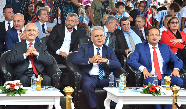 Cumhuriyet Halk Partisi Genel Başkanı Kemal Kılıçdaroğlu, İzmir Büyükşehir Belediyesi ve ilçe belediyeleri tarafından kente kazandırılan yatırımların açılışını yapmak üzere İzmir’e geldi. Bir gün içinde 6 ilçede 42 açılış, 7 temel atma törenine katılacak olan Kılıçdaroğlu'nun ilk durağı Balçova oldu. Balçova Belediyesi Spor Tesisleri içinde Balçova Belediyesi tarafından yaptırılan 2 bin kişilik tribün, kent belleği ve engelli merkezi ile Down Cafe'nin açılışını yapan CHP Genel Başkanı, buradaki programının ardından İzmir Büyükşehir Belediyesi ve Bornova Belediyesi işbirliği ile Doğanlar’da yapılan Bornova Stadyumu’nun açılışını yaptı.