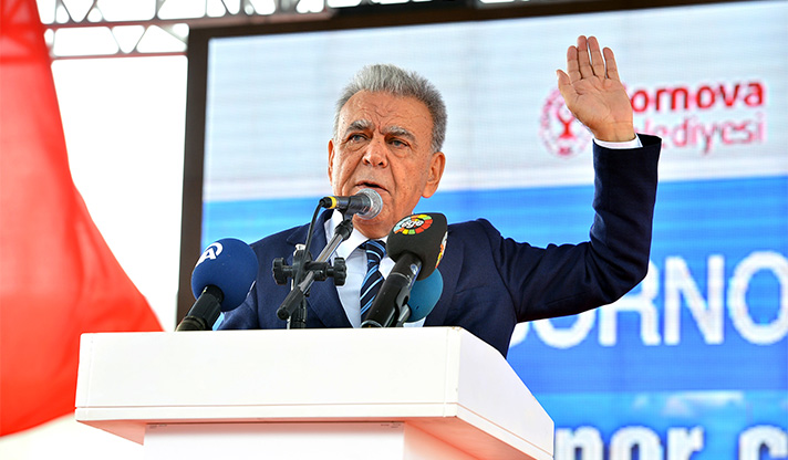 "Merkezi hükümet 'stat yapacağım' diye 10 senedir havuç gösterirken biz buranın temelini attık ve tamamladık. 2017 Mayıs ayında da Tire'deki 15 bir kişilik stadımızın açılışını yapacağız. Peki siz neredeydiniz? İki stat yapacağız diye İzmir'in futbol severlerini, İzmir'in insanını 10 senedir ileri geri çekiyorlar. Aynı yağmurlu havada şemsiye verenin hikayesi gibi. Bırakın Örnekköy'de, Menderes'de belirlenen yeri verin. Biz bir kuruş talep etmeden İzmir Büyükşehir Belediyesi'nin öz kaynakları ile hem stat, yanında da spor kompleksi yapmak istediğimizi buradan son kez sayın Genel Başkanımızın huzurunda ilan ediyorum."
