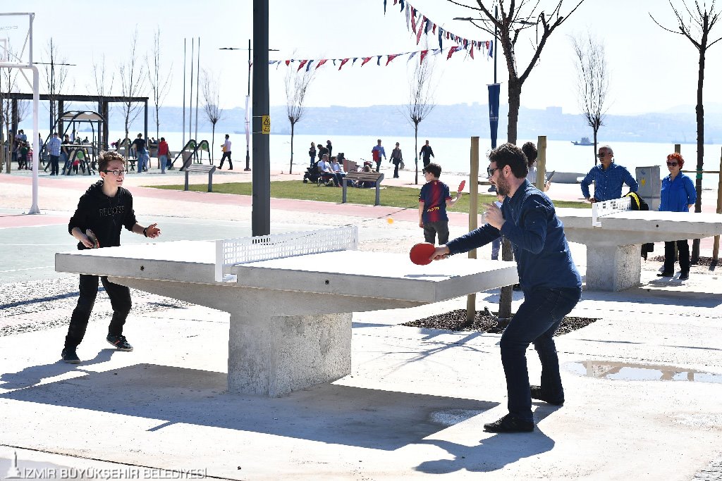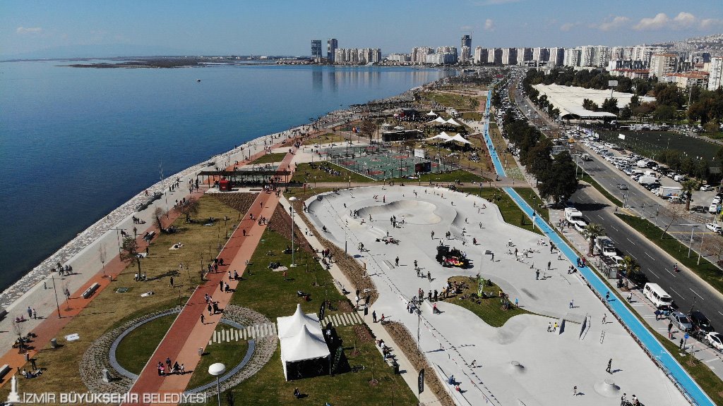 Büyükşehir Belediyesi, İzmirDeniz adı verilen Kıyı Tasarım Projesi kapsamında, Bostanlı kıyılarında toplam 120 dönüm alanı yeniledi. "Balıkçı Barınağı ile Yasemin Cafe" arasındaki ilk bölümü geçtiğimiz Mayıs ayında, Bostanlı Pazaryeri karşısındaki ikinci bölümü de Eylül ayında vatandaşların kullanımına sunan Büyükşehir Belediyesi, "dev kaykay parkının" da yer aldığı son bölümü şenlikli bir törenle hizmete açtı. İzmir Büyükşehir Belediyesi Pop Orkestrası'nın konseri ile başlayıp Kaykay parkındaki gösterilerle devam eden açılış etkinliğinde, çocuklar da şişme oyun gruplarında gönüllerince eğlendi.