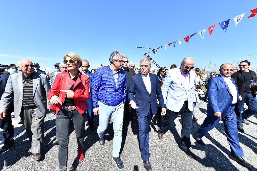 Karşıyaka Belediye Başkanı Hüseyin Mutlu Akpınar ise belediye başkanlığı döneminde Karşıyaka'ya yaptığı hizmetlerden ötürü İzmir Büyükşehir Belediye Başkanı Aziz Kocaoğlu'na teşekkür ederek, "Belediye başkanlığı yaptığım sürece yanımda bize ağabeylik yapan Aziz Kocaoğlu vardı. Bu kadar baskının altında tecrübesiyle bize kol kanat gerdi. 15 yıldan beri İzmir'in her bir metrekaresine yaptığı hizmetlerden dolayı kendisine teşekkür ediyorum. Sizinle aynı dönem belediye başkanlığı yapmanın onurunu yaşadım. İzmir'e bir iz bıraktınız. Bu sahil düzenlemesi sadece Karşıyaka'da değil kentin dört bir tarafından gelecekler vatandaşların nefes alabileceği yerlerden bir tanesi oldu" diye konuştu.