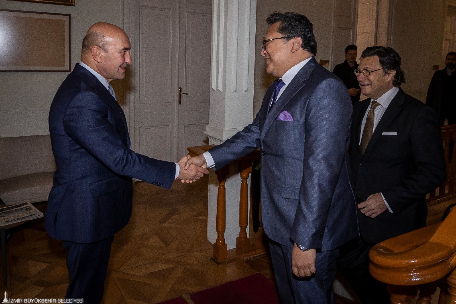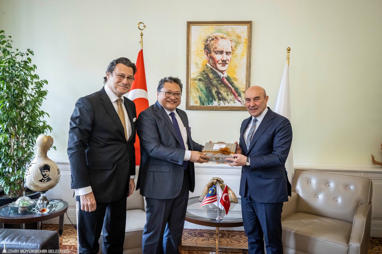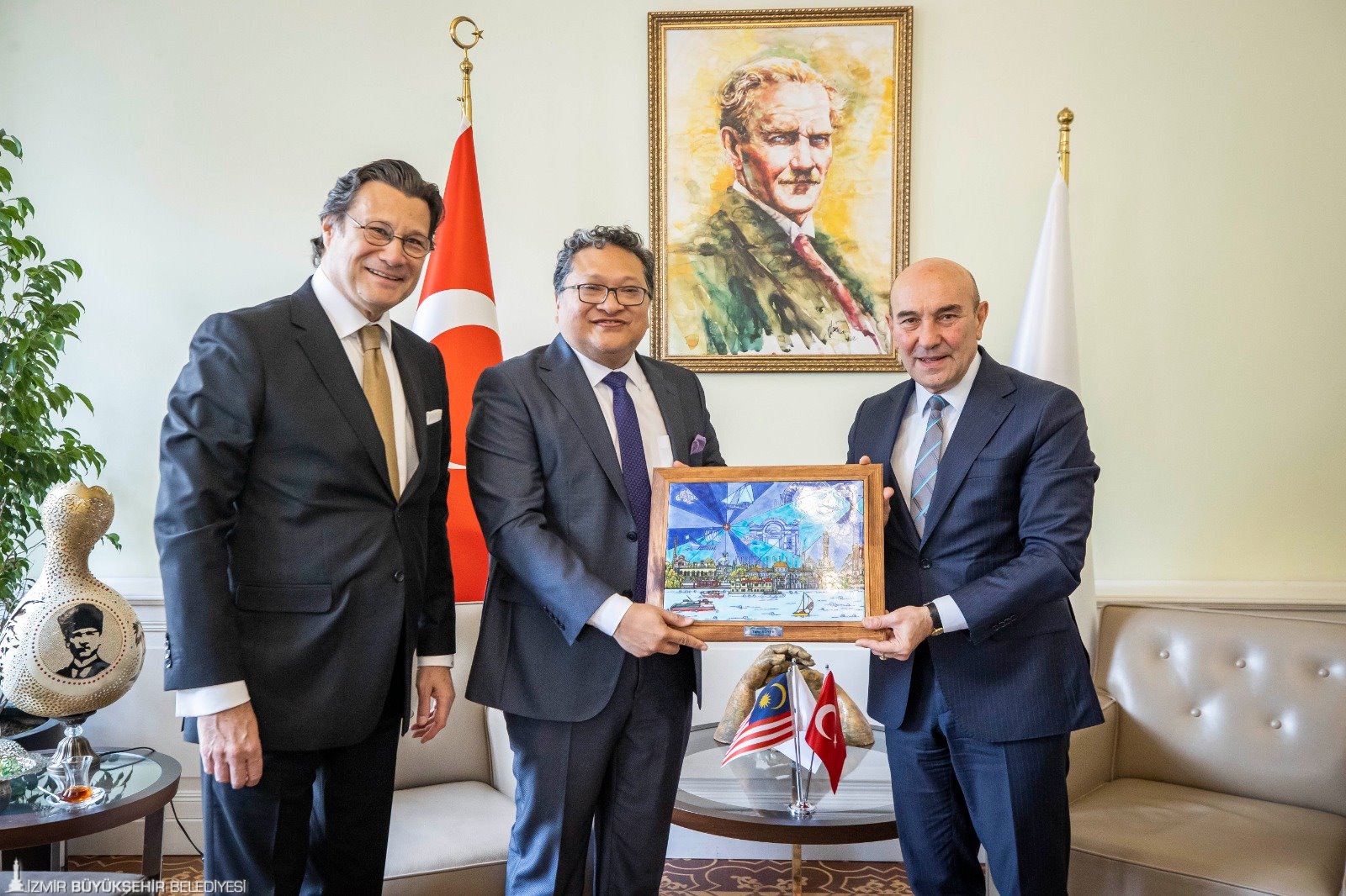 İzmir Büyükşehir Belediye Başkanı Tunç Soyer, Malezya’nın Ankara Büyükelçisi Sazali Bin Mustafa Kamal’ı ve Malezya İzmir Fahri Konsolosu Serdar Şınlak’ı makamında ağırladı. İzmir’e ikinci kez geldiğini ifade eden Büyükelçi Kamal, “Türk kültürünü, insanlarını, yemeklerini çok seviyorum. İzmir çok eski ve tarihi bir kent. Geliş amacım İzmirli ve Malezyalı iş insanlarını bir araya getirip ticaret olanağı sağlamak” dedi.