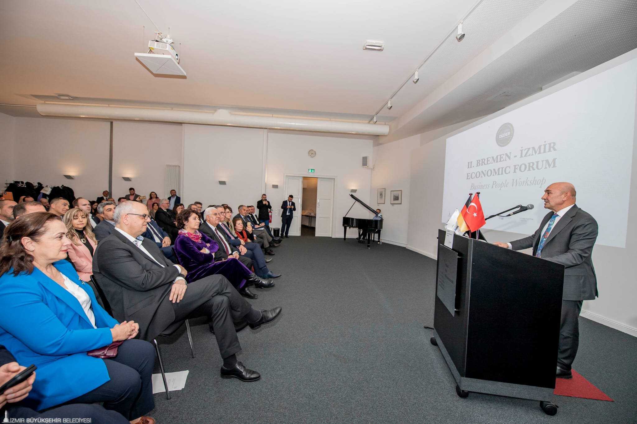 İzmir Büyükşehir Belediye Başkanı Tunç Soyer, Dünya Kenti İzmir Derneği (DİDER) ve İzmir Büyükşehir Belediyesi’nin ortaklığıyla Bremen ile İzmir’in kardeş kent olmalarının yıldönümü nedeniyle düzenlenen 2. Bremen-İzmir Ekonomi Forumu İş İnsanları Buluşması’na katıldı. Bremen Bilim Evi’nde yapılan buluşma Başkan Tunç Soyer, Bremen Belediye Başkanı Dr. Andreas Bovenschulte ve DİDER Bremen Ofis Başkanı Ali Eliş’in açılış konuşmalarıyla başladı.