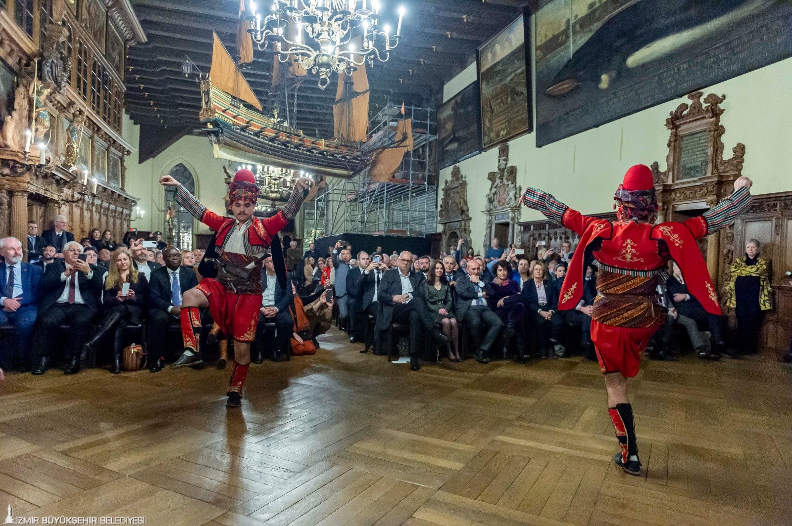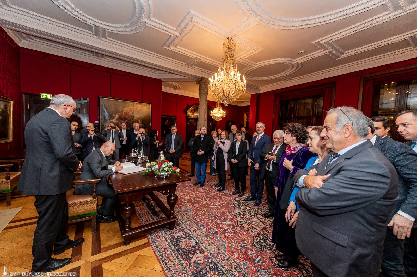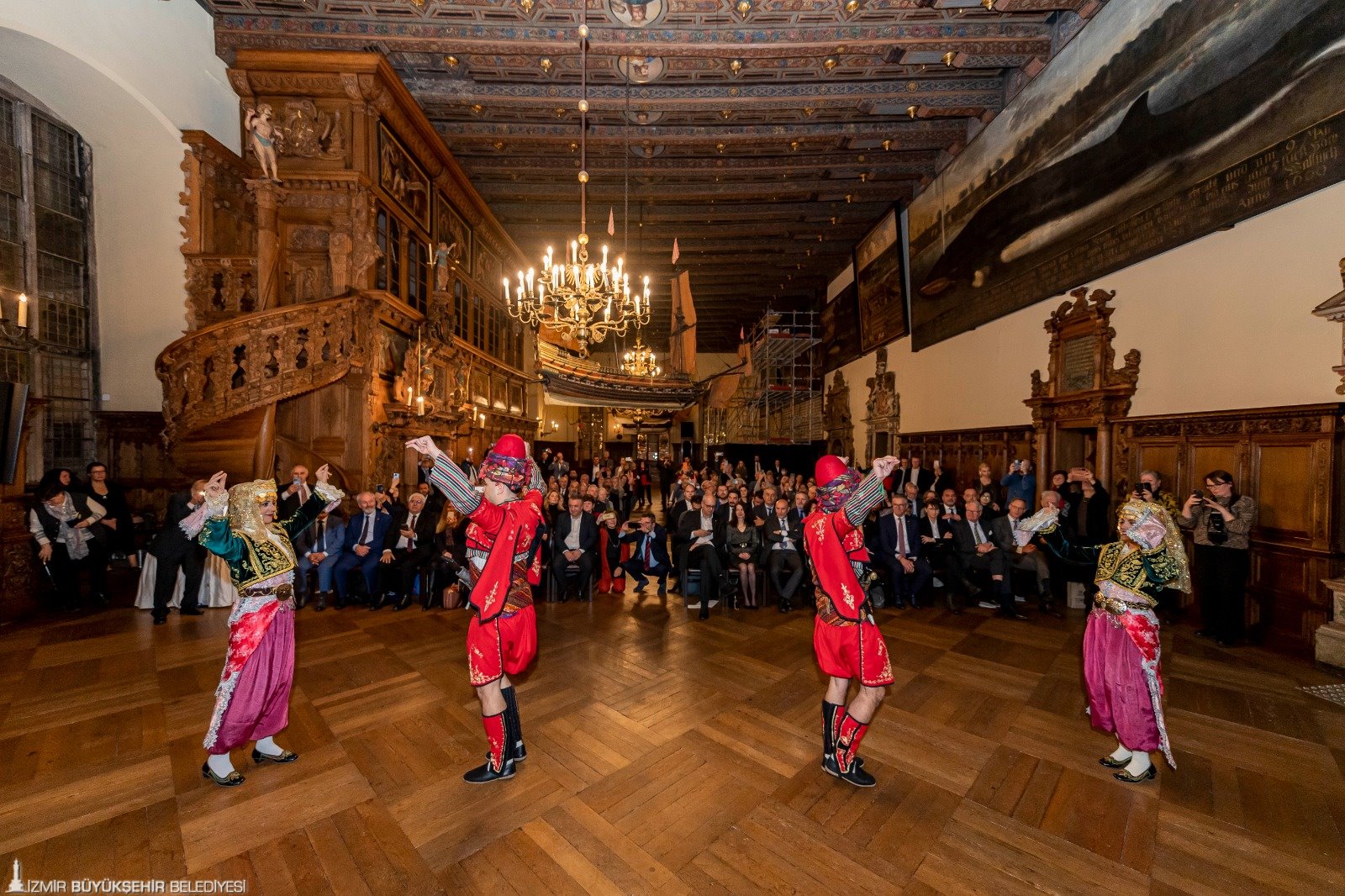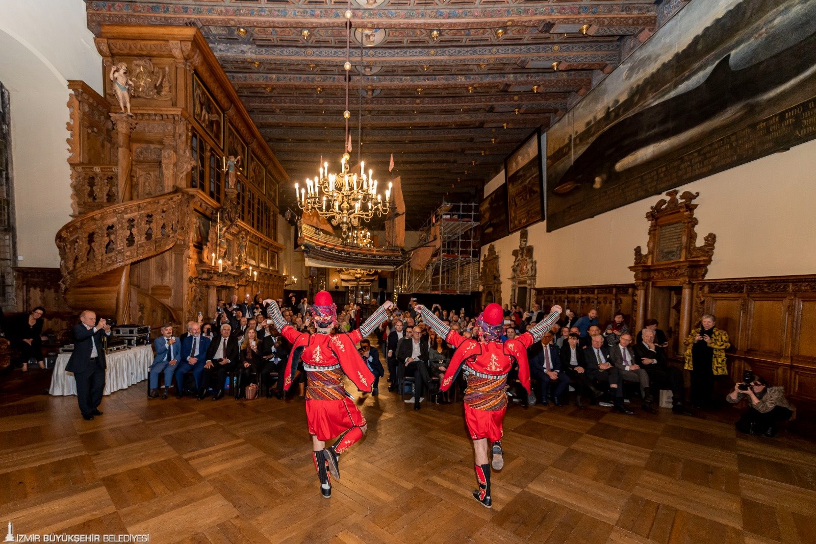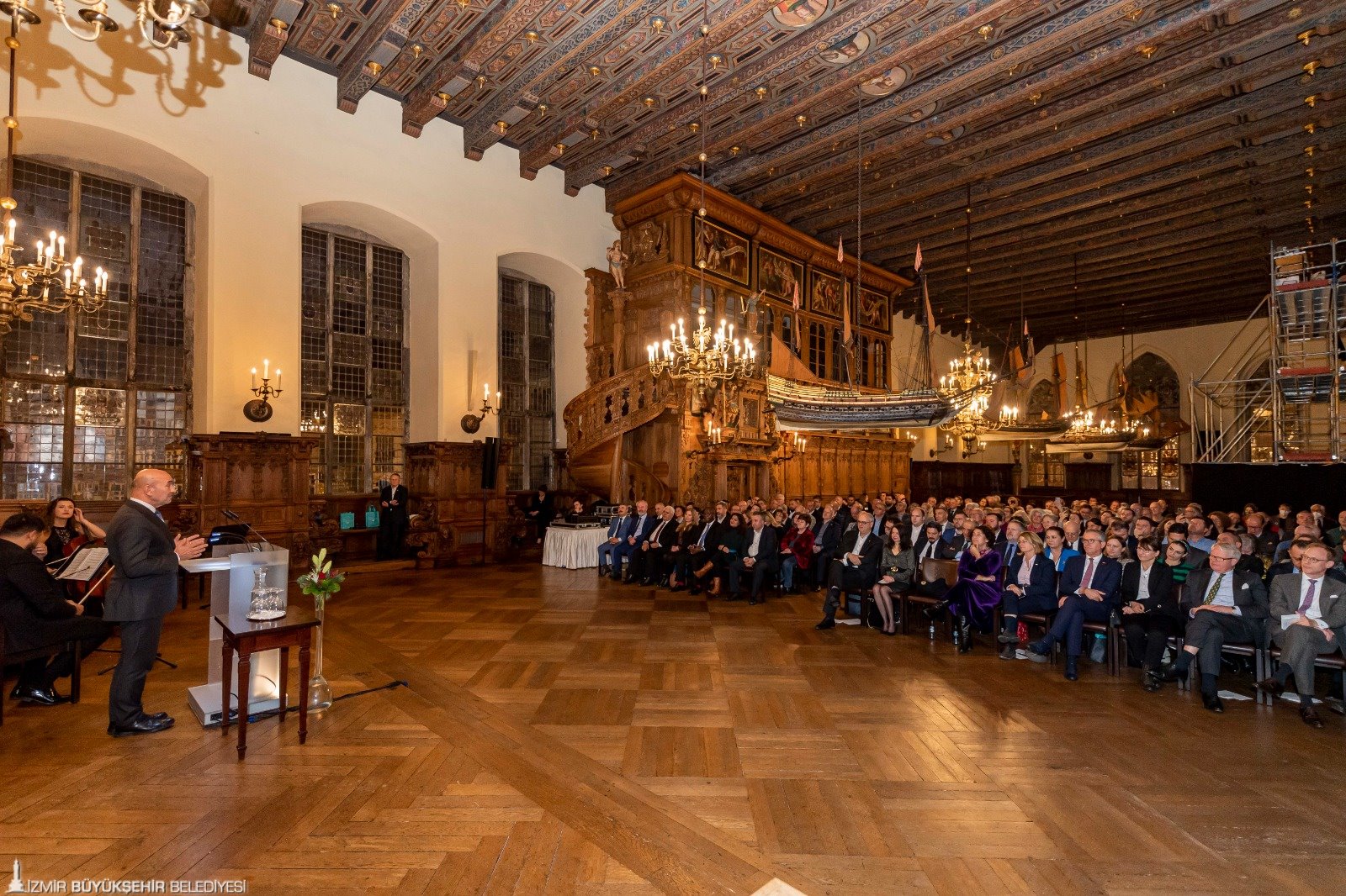 Forum sonrasında Başkan Tunç Soyer ve beraberindeki heyet, UNESCO Kültür Mirası listesinde yer alan tarihi Bremen Belediye Binasında İzmir onuruna verilen resepsiyona katıldı.