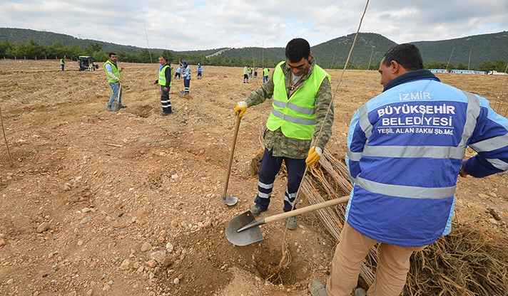 İzmir Büyükşehir Belediyesi, kapasitesini dolduran Gaziemir Evka-7 ve Buca Kırıklar Mahallesi’ndeki moloz döküm sahalarını, yürüttüğü ağaçlandırma çalışmalarıyla kente yeşil alan olarak kazandıracak.