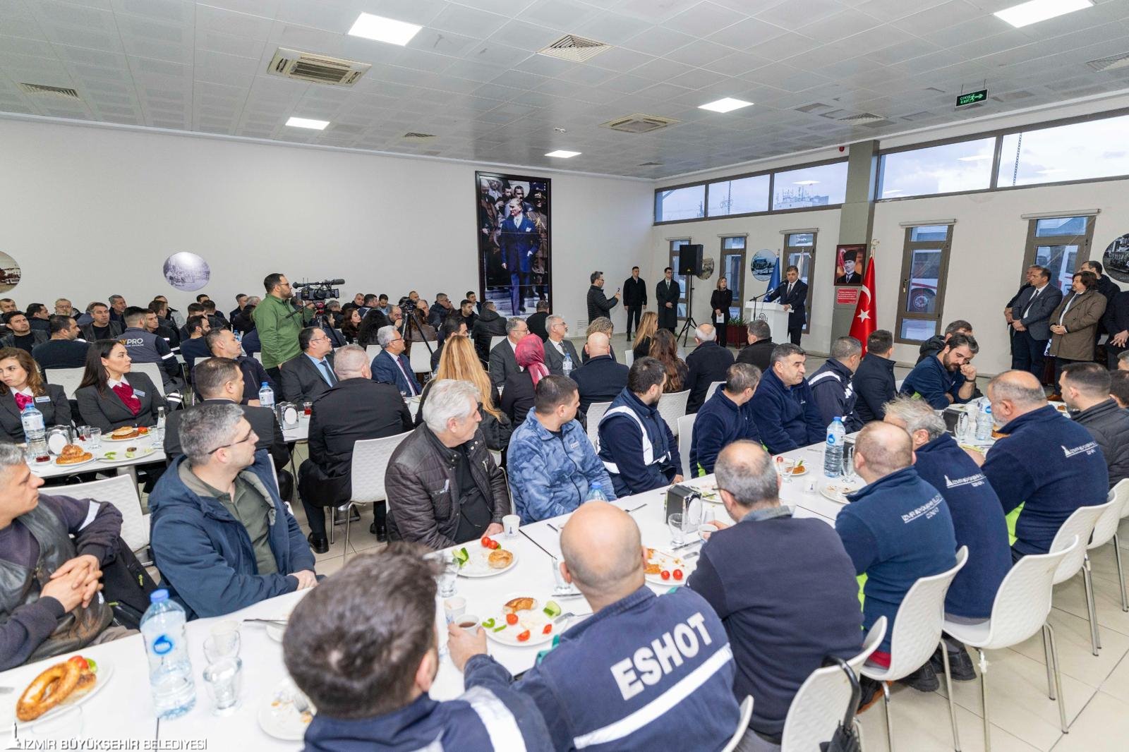 İzmir Büyükşehir Belediyesi’nin İzmir ve Türkiye’nin en büyük kurumlarından olduğunu hatırlatan Tugay, “ESHOT da 83 yıllık bir kurum ve Türkiye’nin büyük kurumlardan birisi. Böylesine köklü bir kurumun üyesi olmak gurur duymanız gereken bir şey. İzmir gibi bir şehre hizmet ediyoruz. Benim gözümde İzmir, asla dengi ve eşi benzeri olmayan bir şehir. Bu şehre hizmet etmek bizler için bir onurdur. Sizler için de öyle olmalı” dedi.