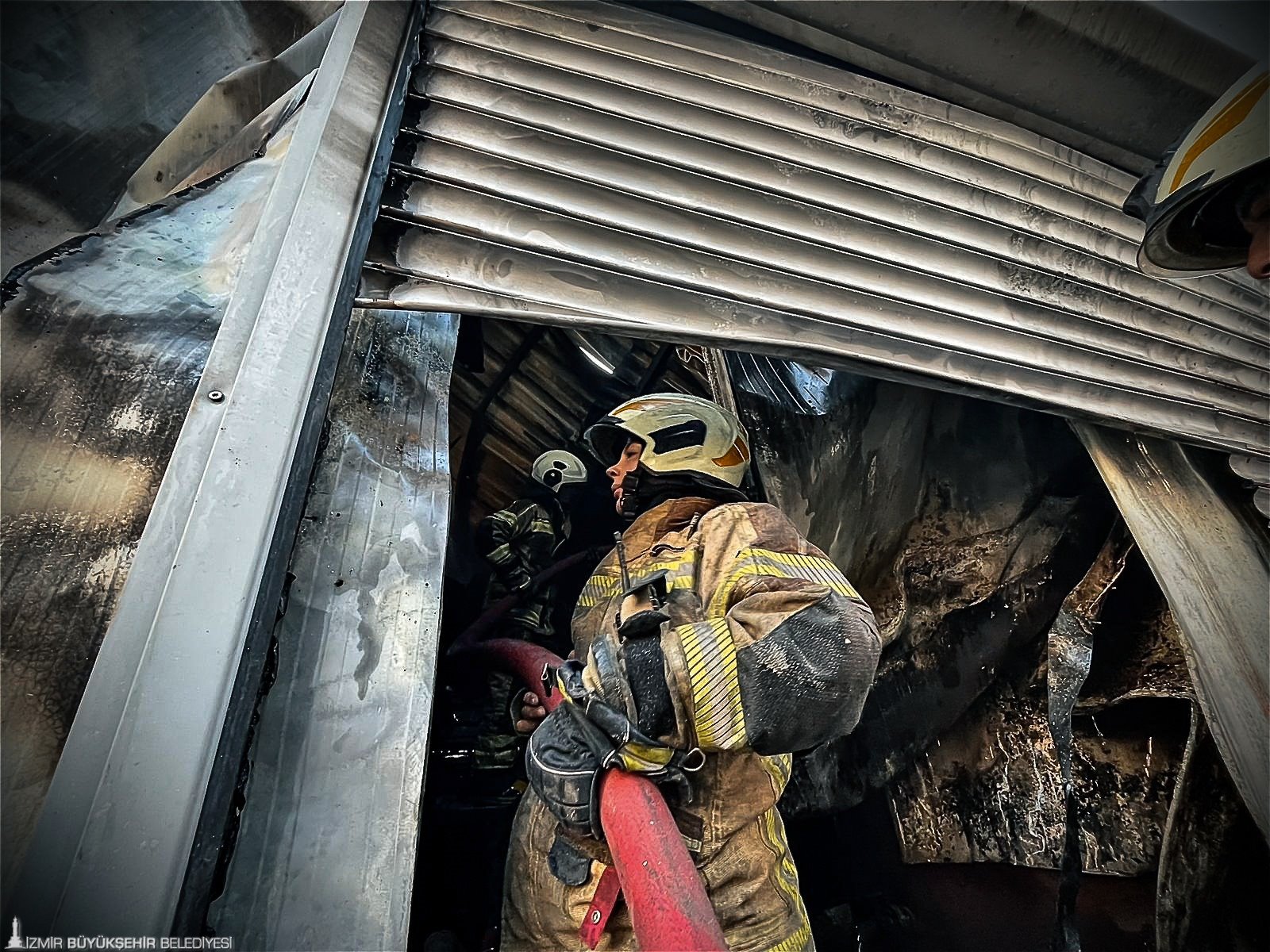 İzmir’in Buca ilçesi Göksu Mahallesi’nde yoğurt üretimi yapılan tek katlı bir iş yerinde saat 11.10 sıralarında yangın çıktı. Üretim alanından yükselen yoğun dumanı gören çevre sakinleri durumu 112 Acil Çağrı Merkezi’ne bildirdi. Yangın mahallede kısa süreli paniğe yol açtı. İhbar üzerine İzmir Büyükşehir Belediyesi İtfaiye Dairesi Başkanlığı ekipleri 6 araç ve çok sayıda personelle olay yerine sevk edildi. Alevlere hızla müdahale eden ekipler, yangının büyümesini ve çevredeki binalara sıçramasını önlemek için yoğun bir çalışma yürüttü. Daha etkin müdahale sağlamak amacıyla iş yerinin bazı bölümleri özel ekipmanlarla kontrollü şekilde kesilerek yangın noktalarına doğrudan müdahale imkânı oluşturuldu. Yaklaşık 30 dakika süren müdahalenin ardından yangın, çevredeki yapılara sıçramadan kontrol altına alındı. Olayda can kaybı ya da yaralanma meydana gelmedi.