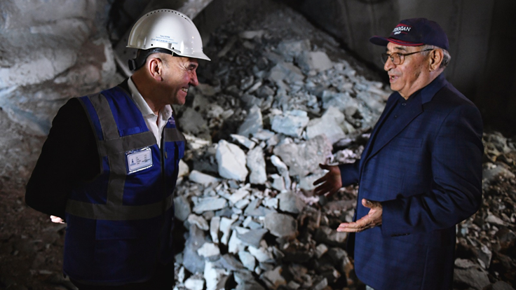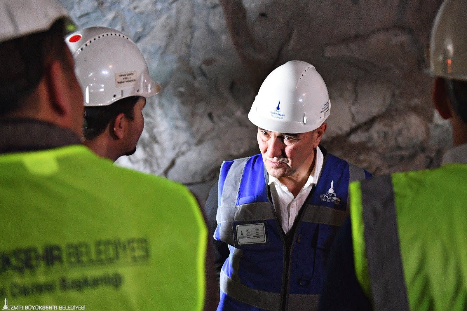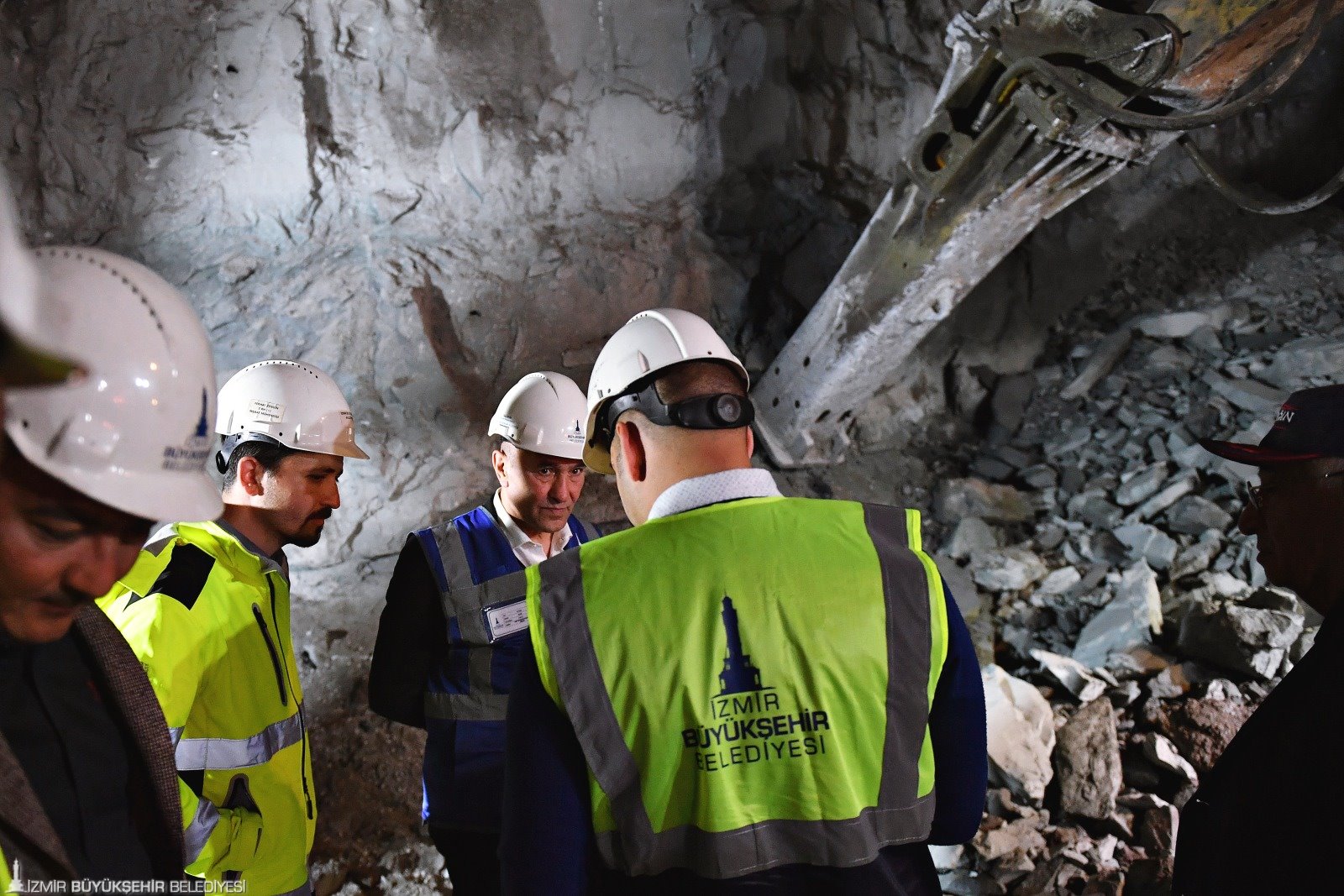 İzmir Büyükşehir Belediye Başkanı Tunç Soyer, Buca ile Bornova’yı kesintisiz birbirine bağlayacak Buca Onat Tüneli çalışmalarını yerinde inceledi. Başkan Soyer, tünelin sonuna kadar giderek kazı çalışmaları hakkında bilgi aldı. Başkan Soyer’e İzmir Büyükşehir Belediyesi Genel Sekreter Yardımcısı Özgür Ozan Yılmaz, Fen İşleri Dairesi Başkanı Hamdi Ziya Aydın ile yüklenici firma yetkilileri ve Büyükşehir Fen İşleri Dairesi çalışanları eşlik etti.